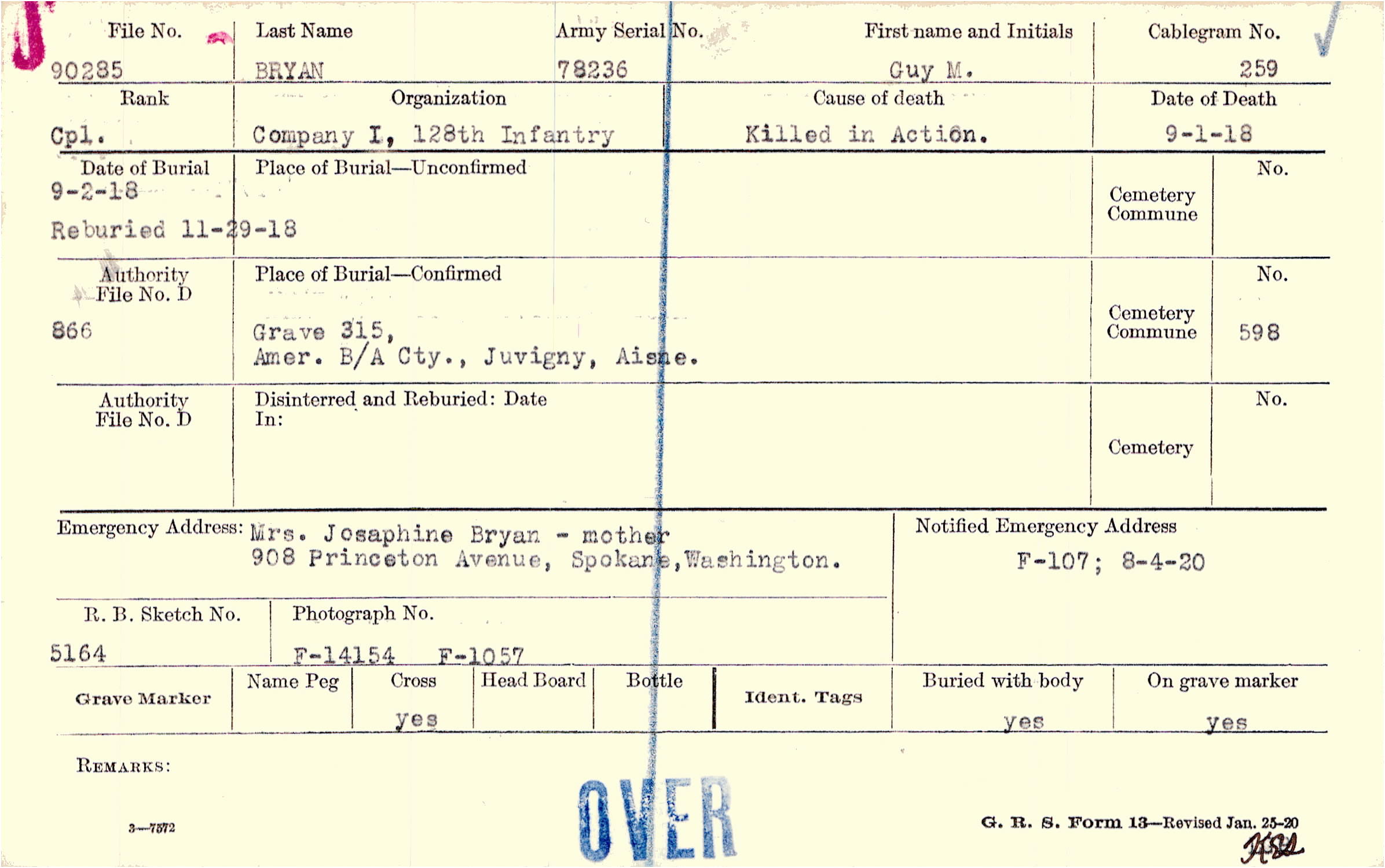 Grave 315, Amer. B/A Cty., Juvigny, Aisne.