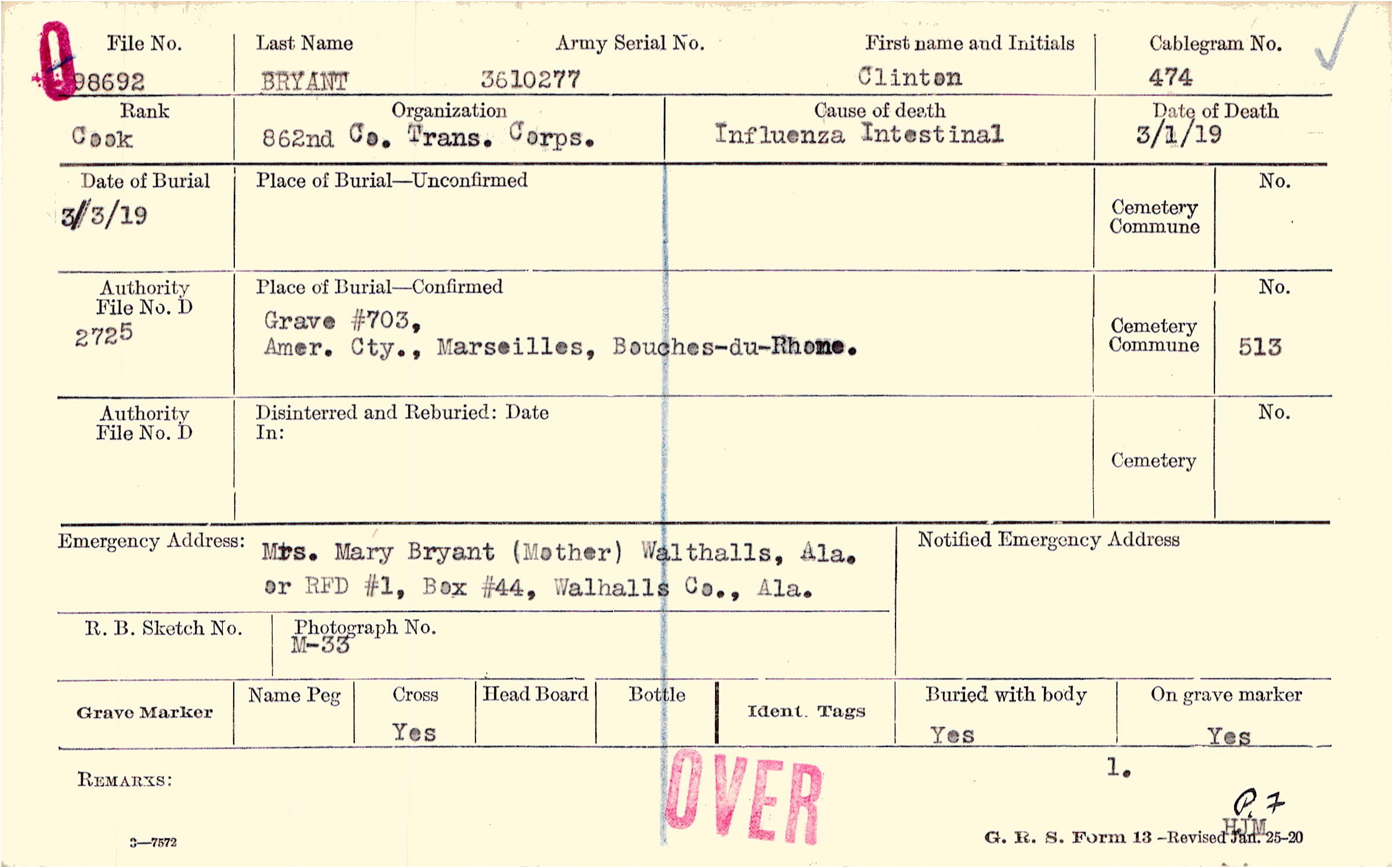 Grave #703, Amer. Cty., Marseilles, Bouches-du-Rhone.