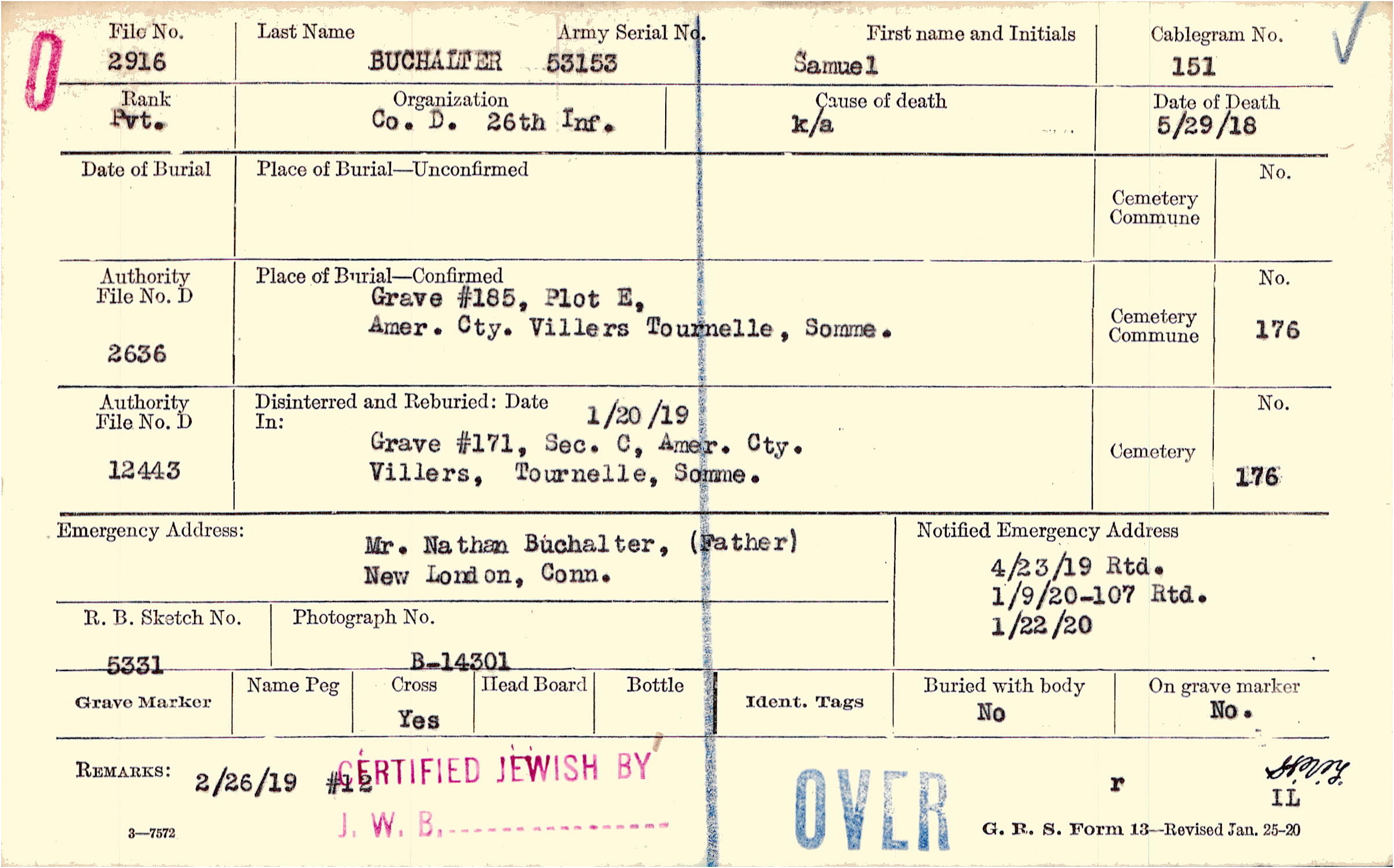 Mr. Nathan Buchalter, (Father), New London, Conn.