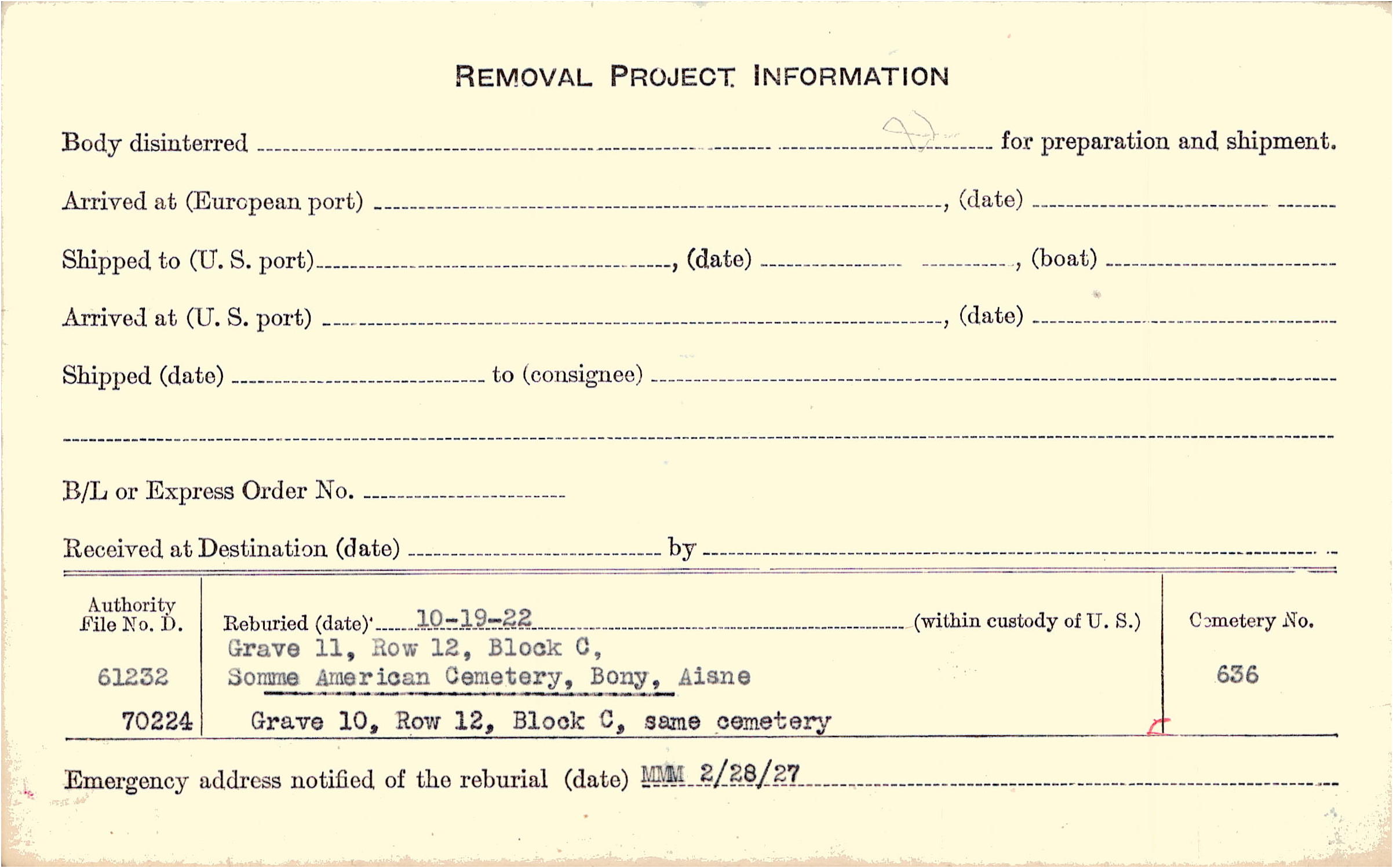 Prior Burial in Foreign Cemetery |