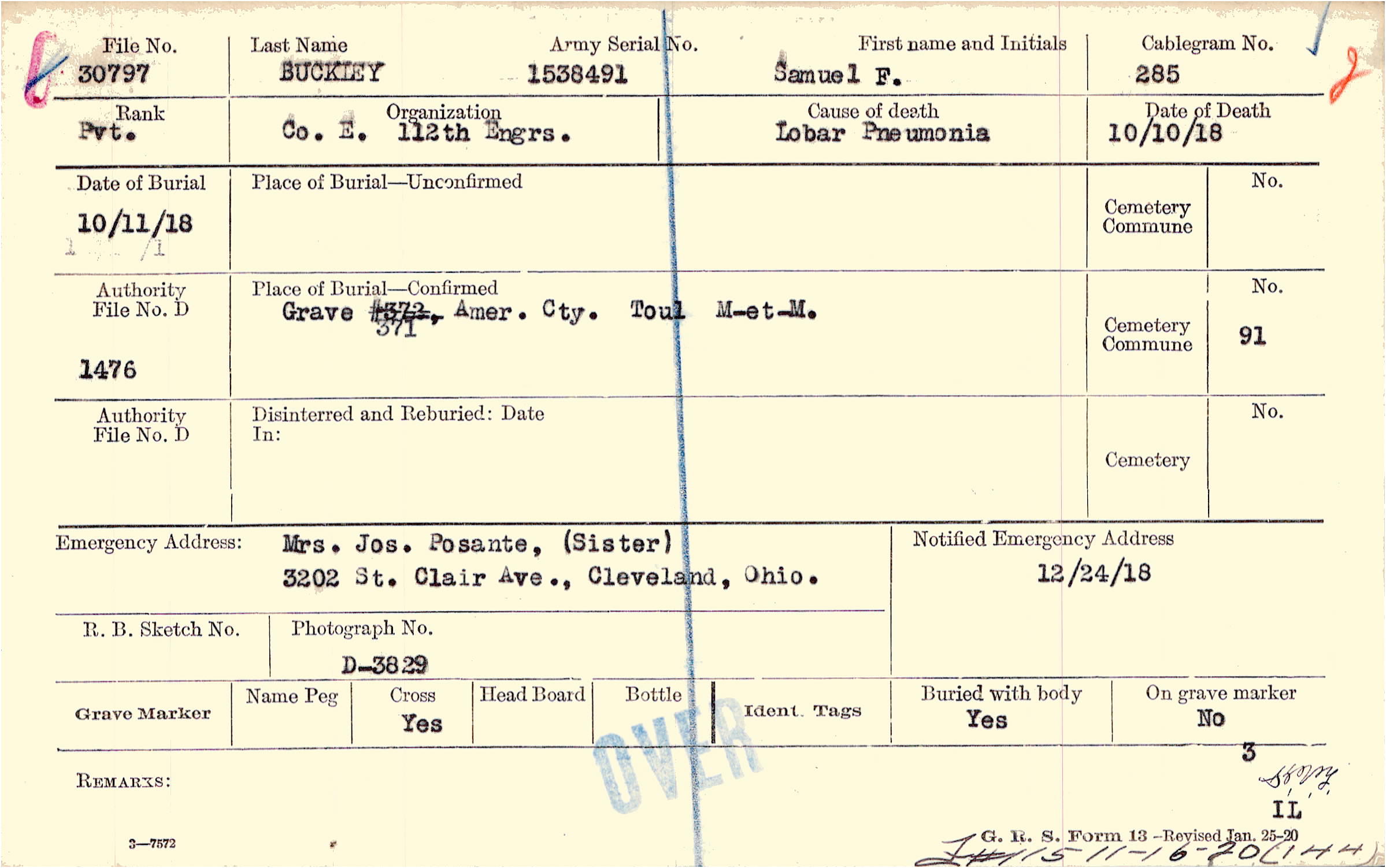 Grave #371, Amer. Cty., Toul, M-et-M.