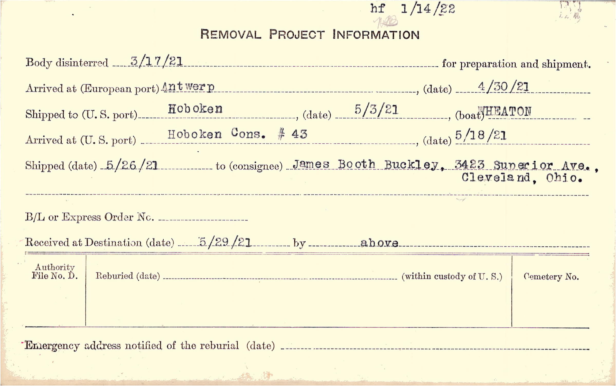 to James Booth Buckley, 3423 Superior Ave., Cleveland, Ohio.