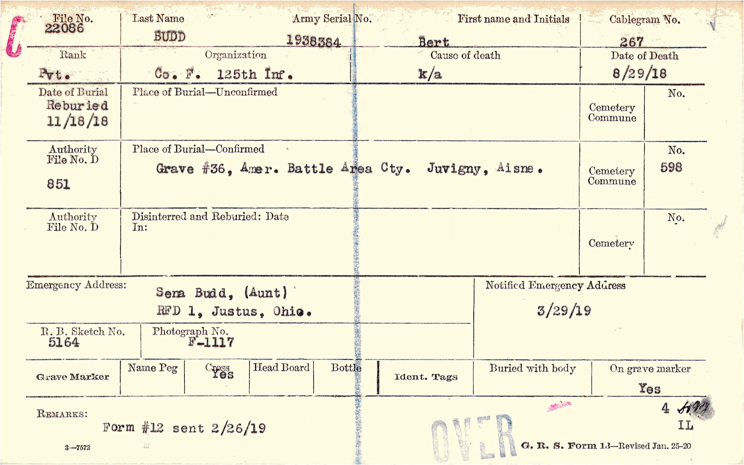 Grave #36, Amer. Battle Area Cty., Juvigny, Aisne.