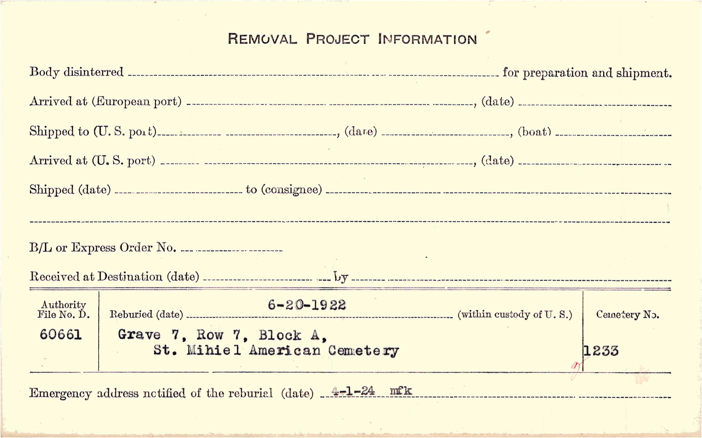 | Permanent Burial in Foreign Cemetery |