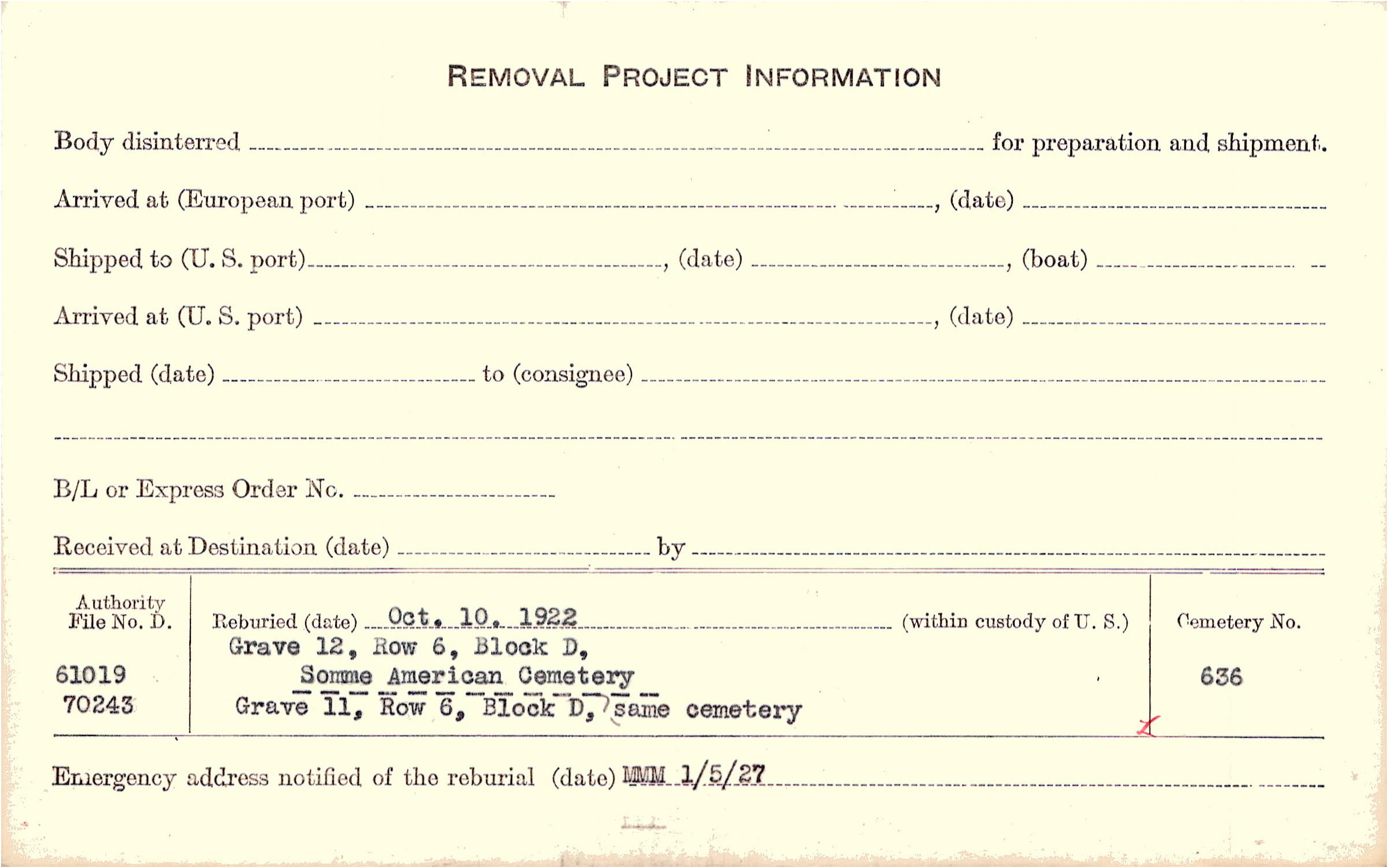 Prior Burial in Foreign Cemetery |