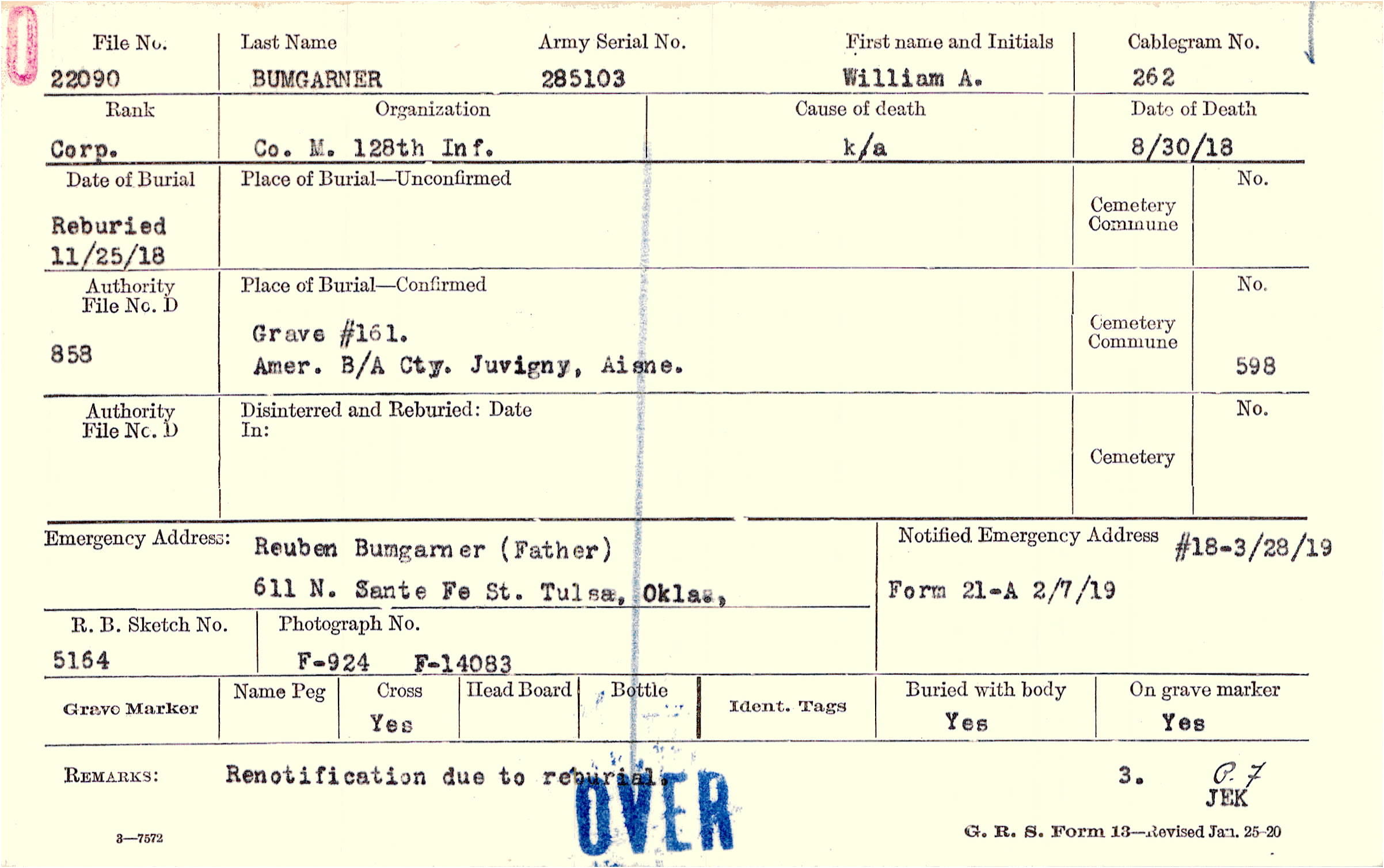 Reuben Bumgarner (Father), 611 N. Sante Fe St. Tulsa, Okla.