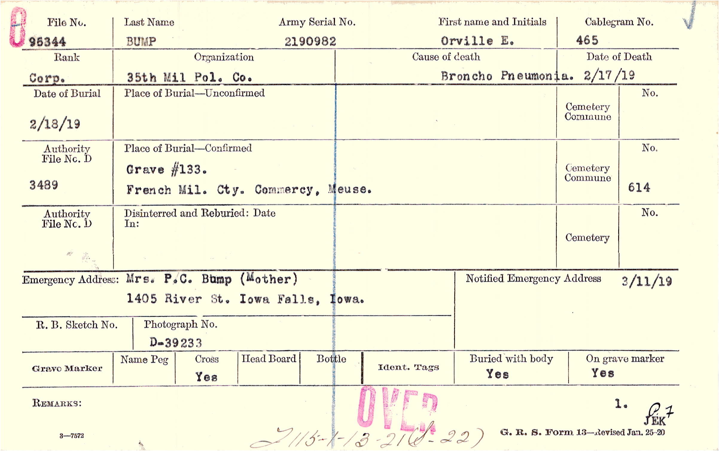 Grave #133, French Mil. Cty., Commercy, Meuse