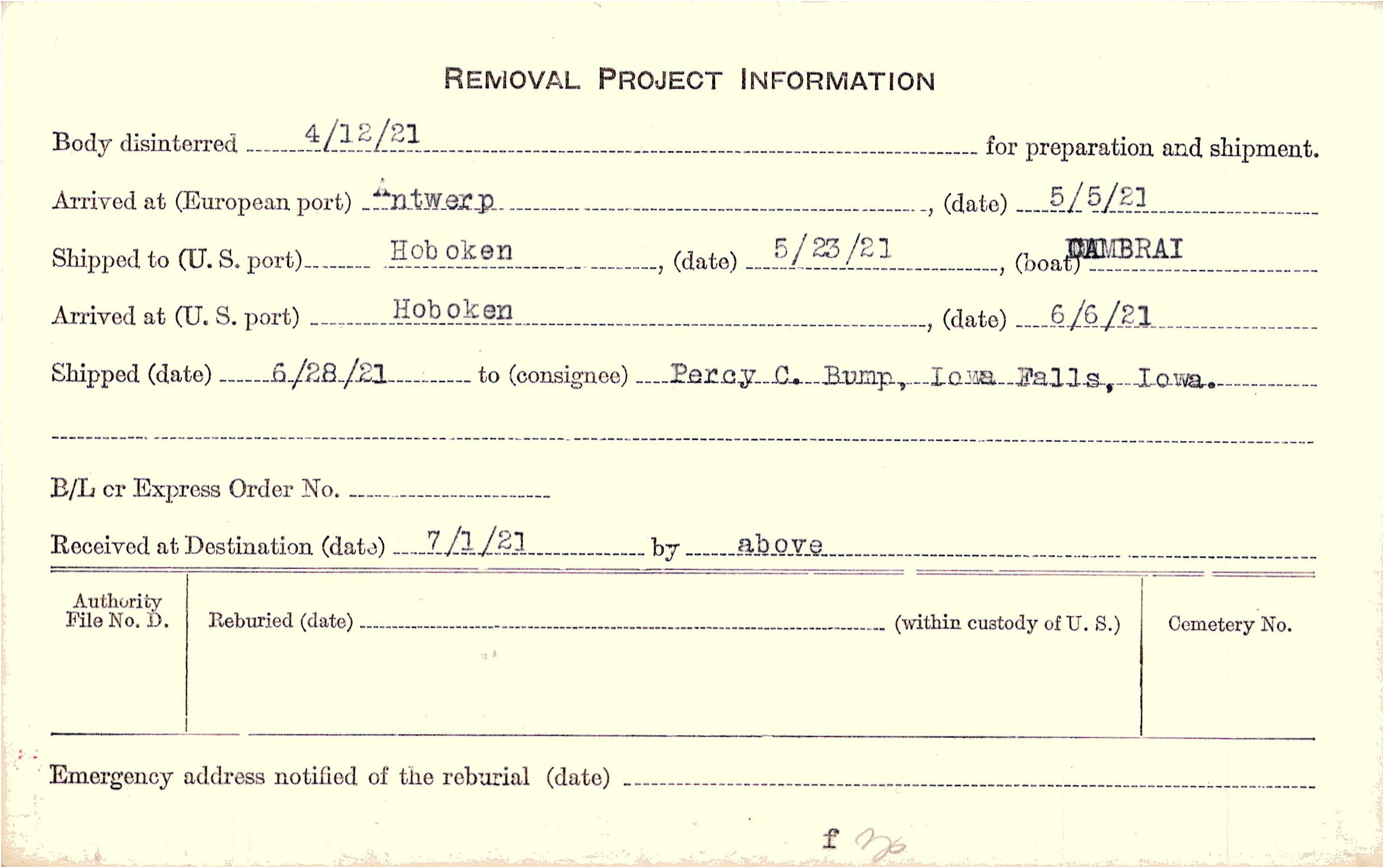 Mrs. P.C. Bump (Mother), 1405 River St. Iowa Falls, Iowa
