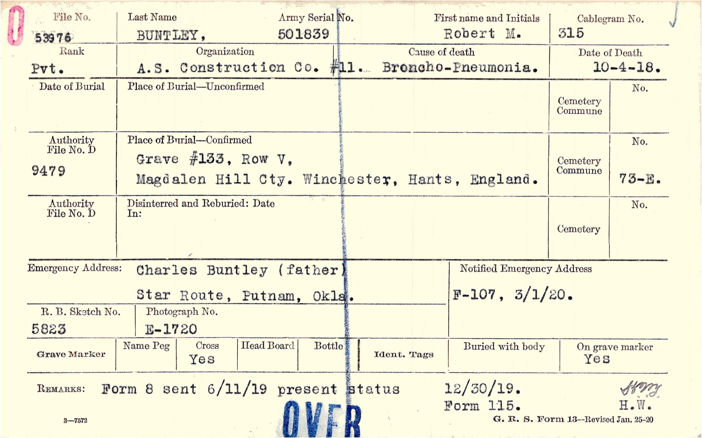 Charles Buntley (father), Star Route, Putnam, Okla.
