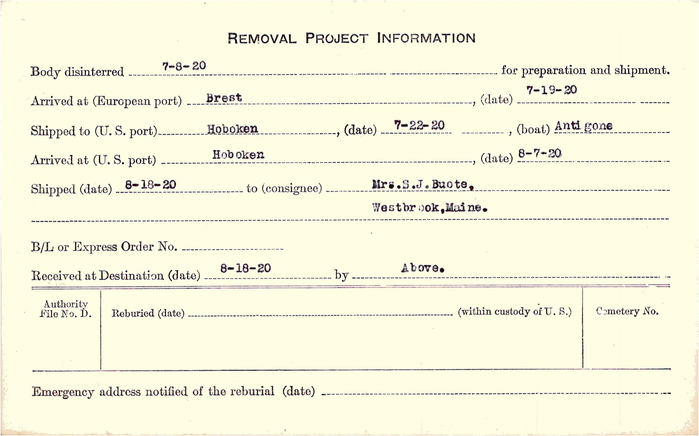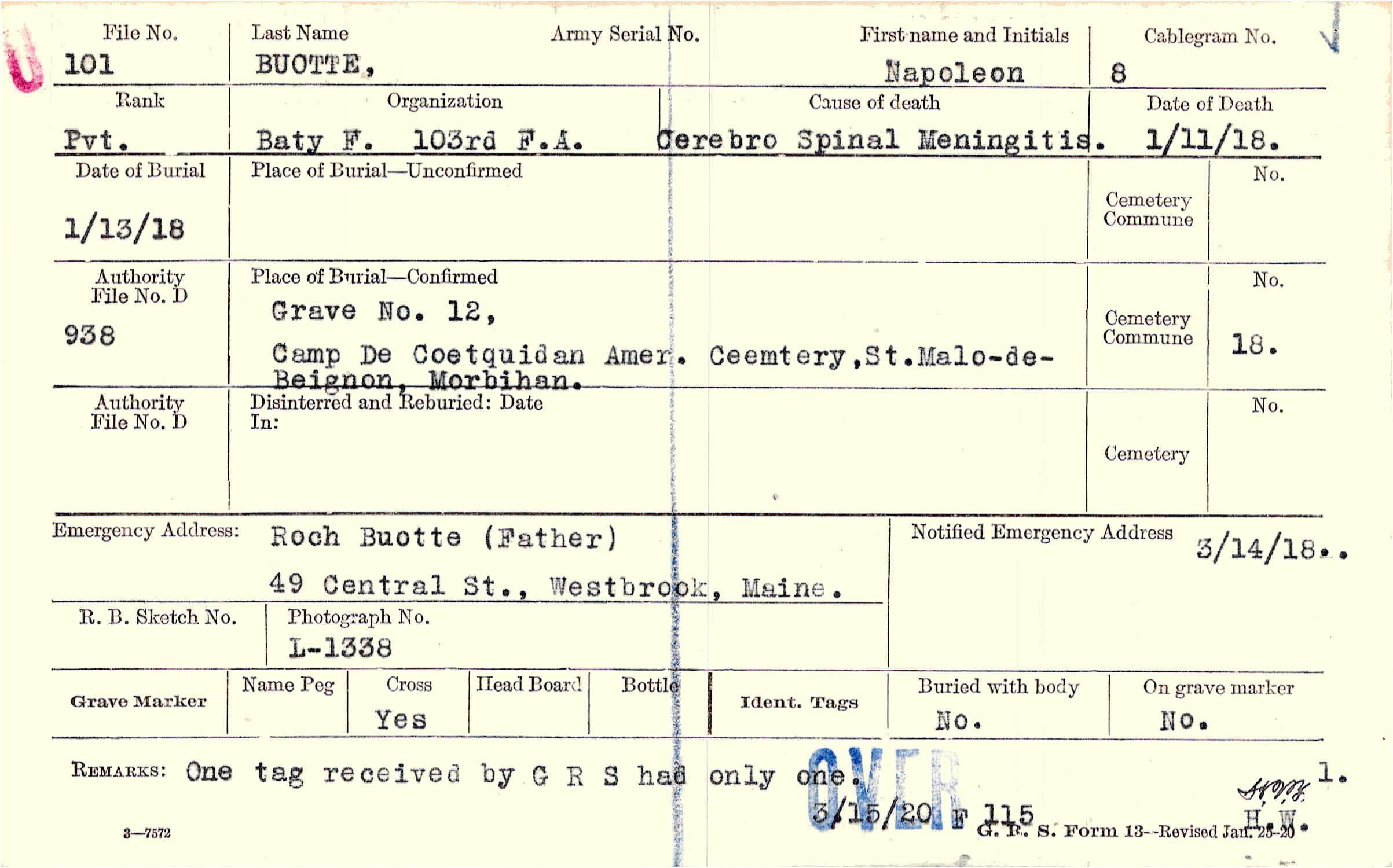 Roch Buotte (Father), 49 Central St., Westbrook, Maine.