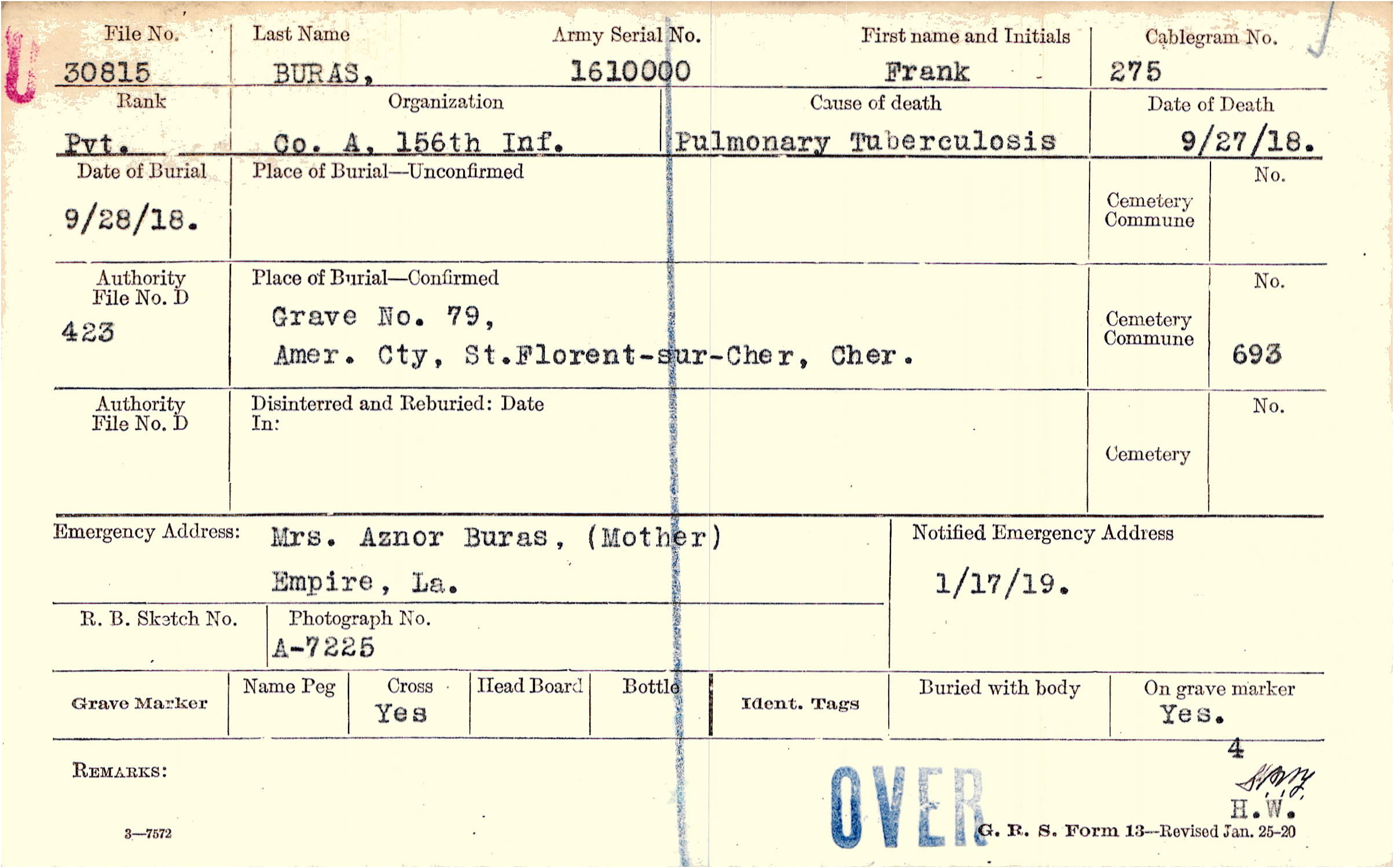 Grave 79, Amer. Cty., St.-Florent-sur-Cher, Cher