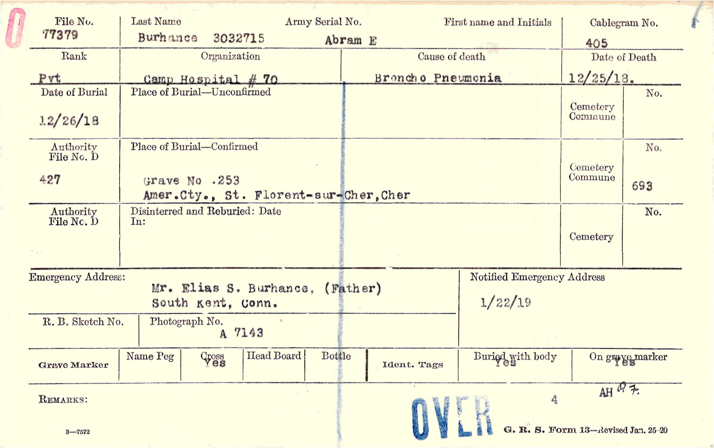 Grave no 253, Amer. Cty., St. Florent-sur-Cher, Cher