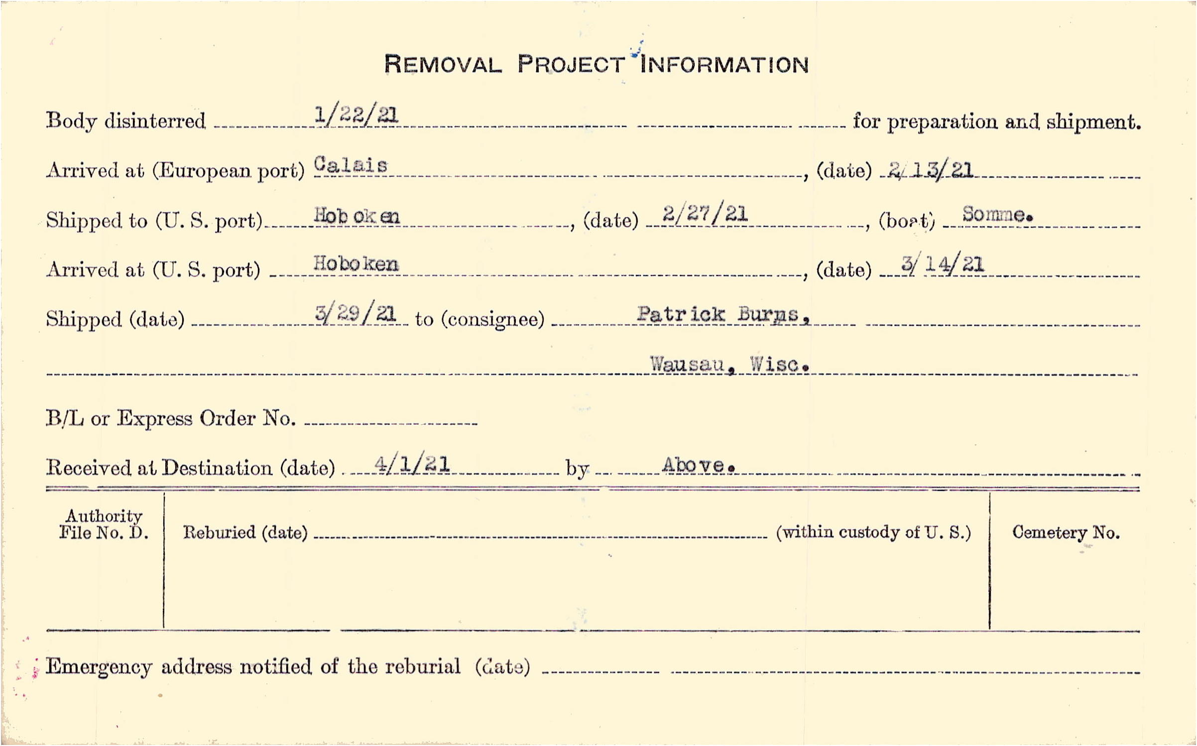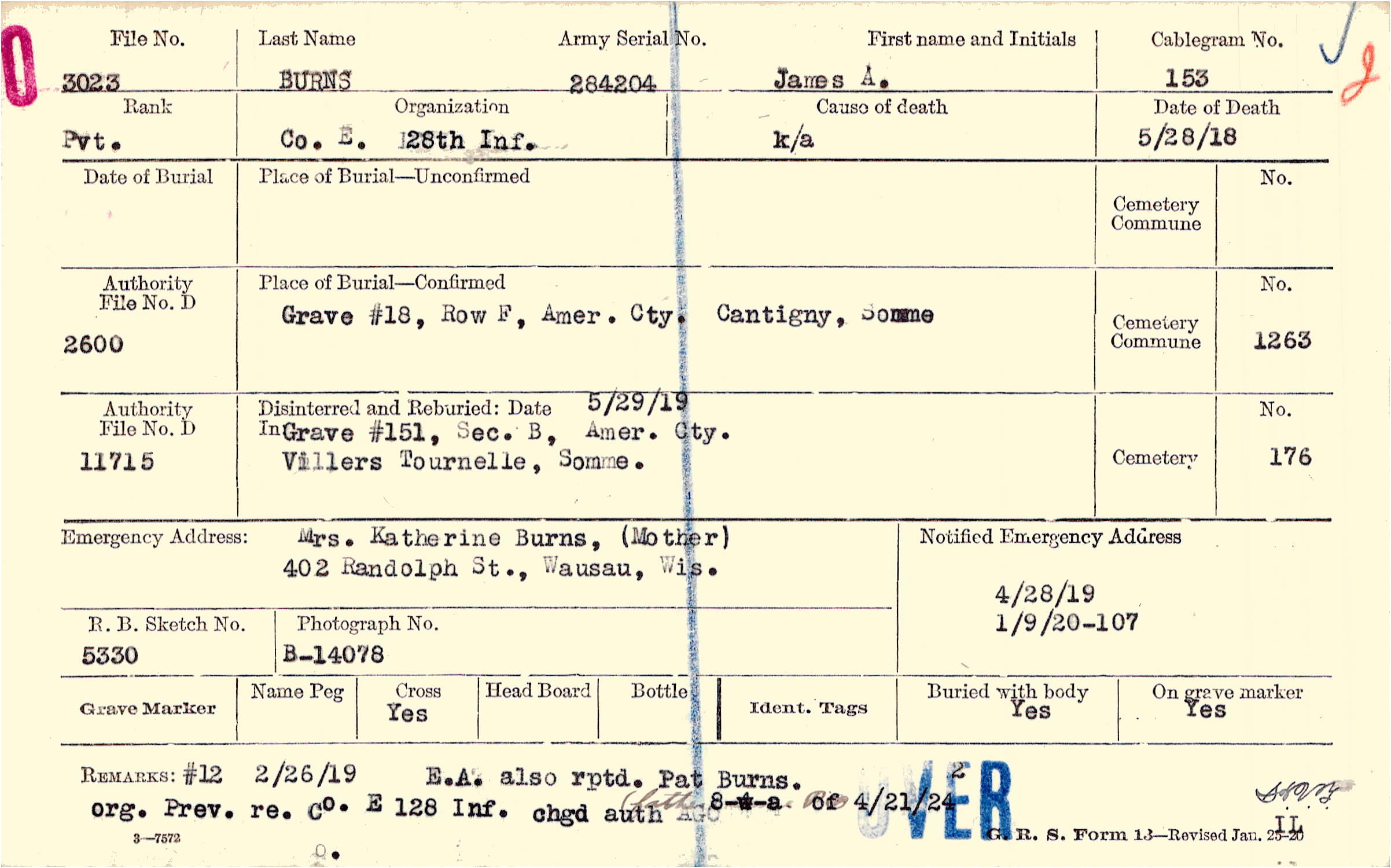 Mrs. Katherine Burns, (Mother), 402 Randolph St., Wausau, Wis.
