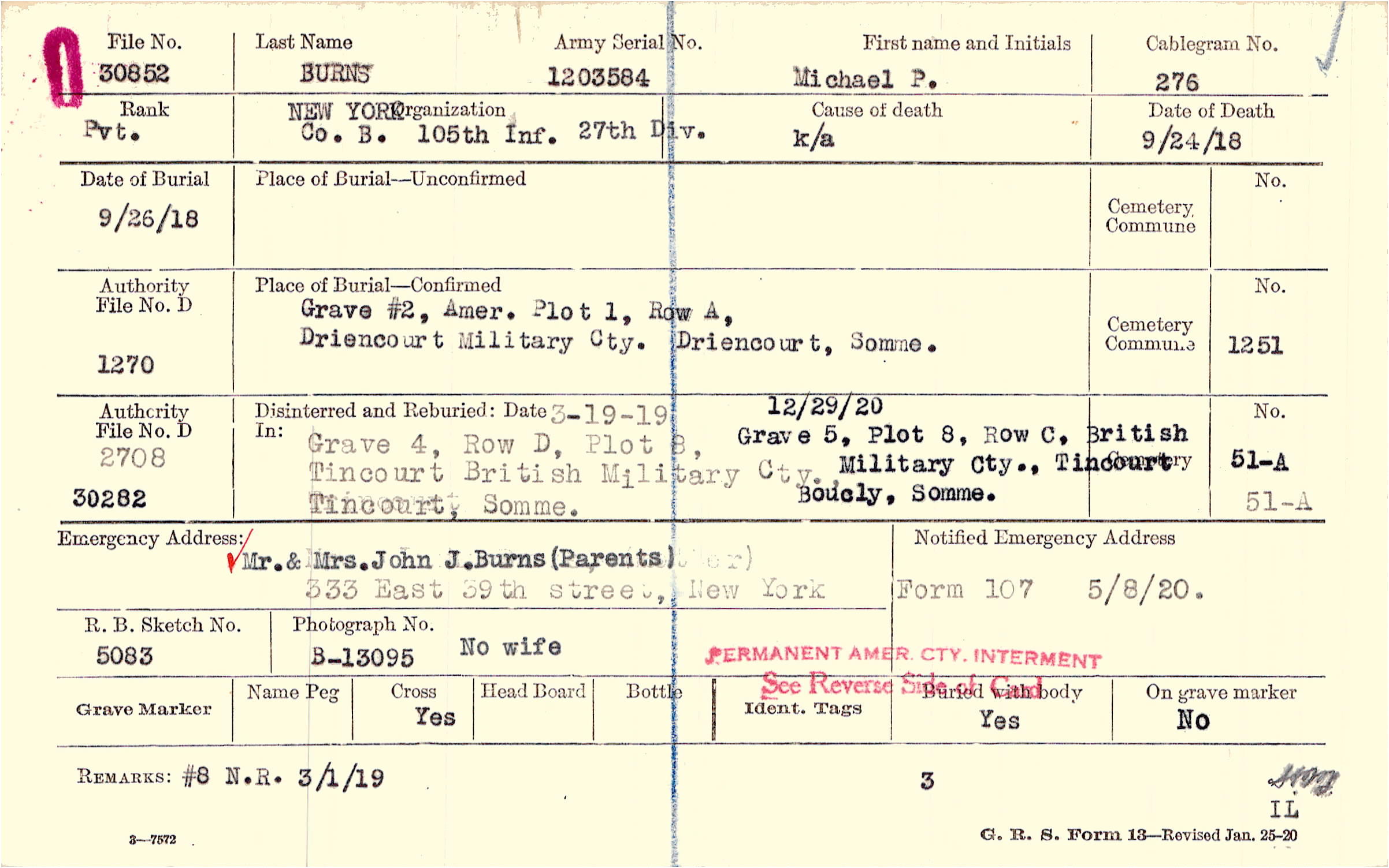 Mr & Mrs. John J. Burns (Parents), 333 East 39th Street, New York, No wife