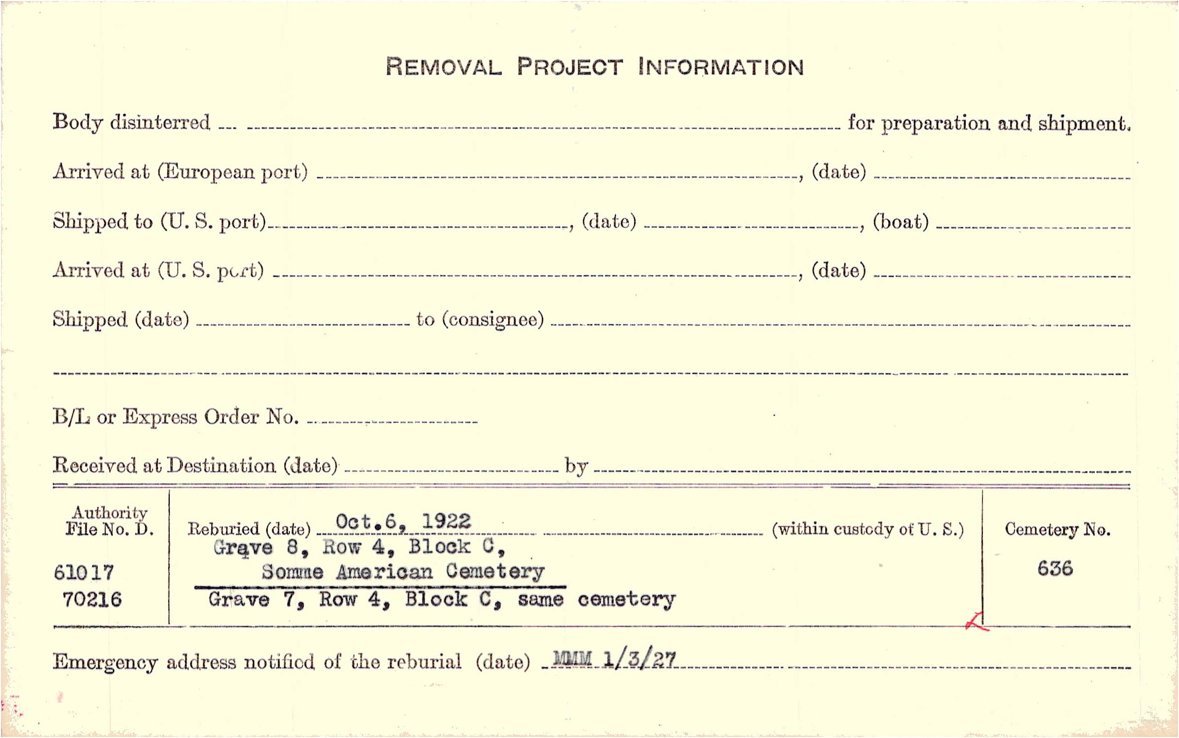 Grave #2, Amer. Plot 1, Row A, Driencourt Military Cty., Driencourt, Somme.