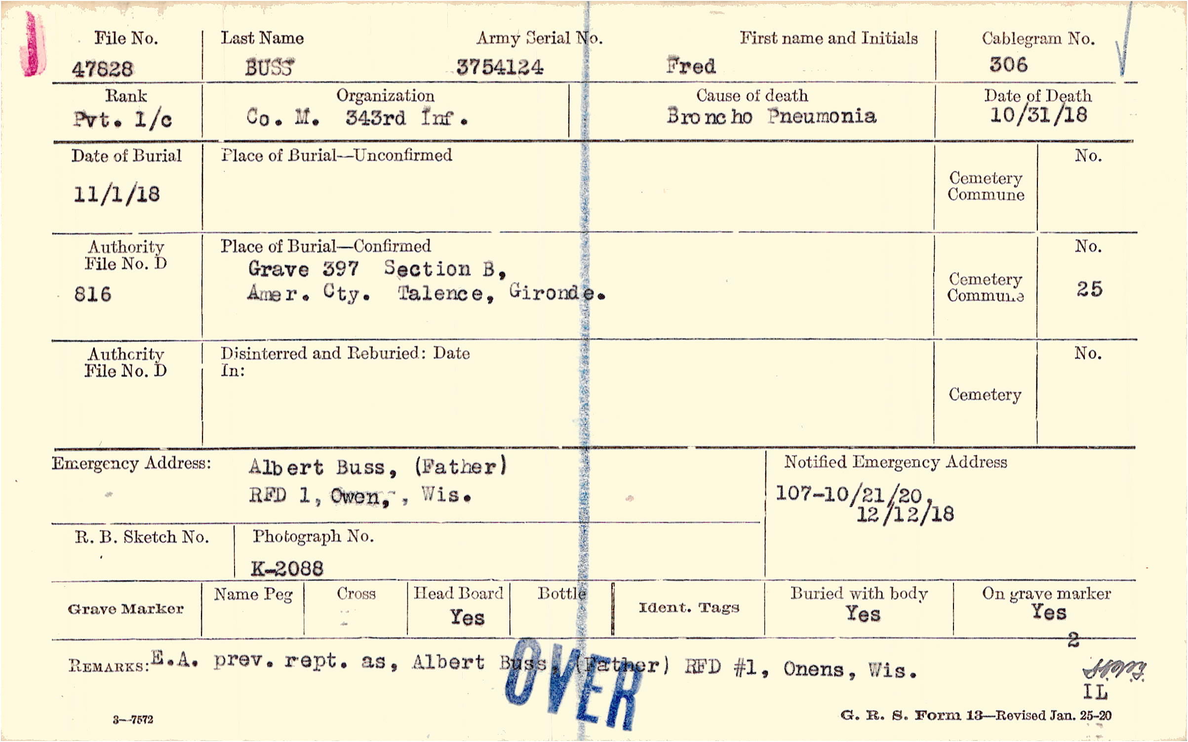 Albert Buss, (Father), RFD 1 Owen, Wis.