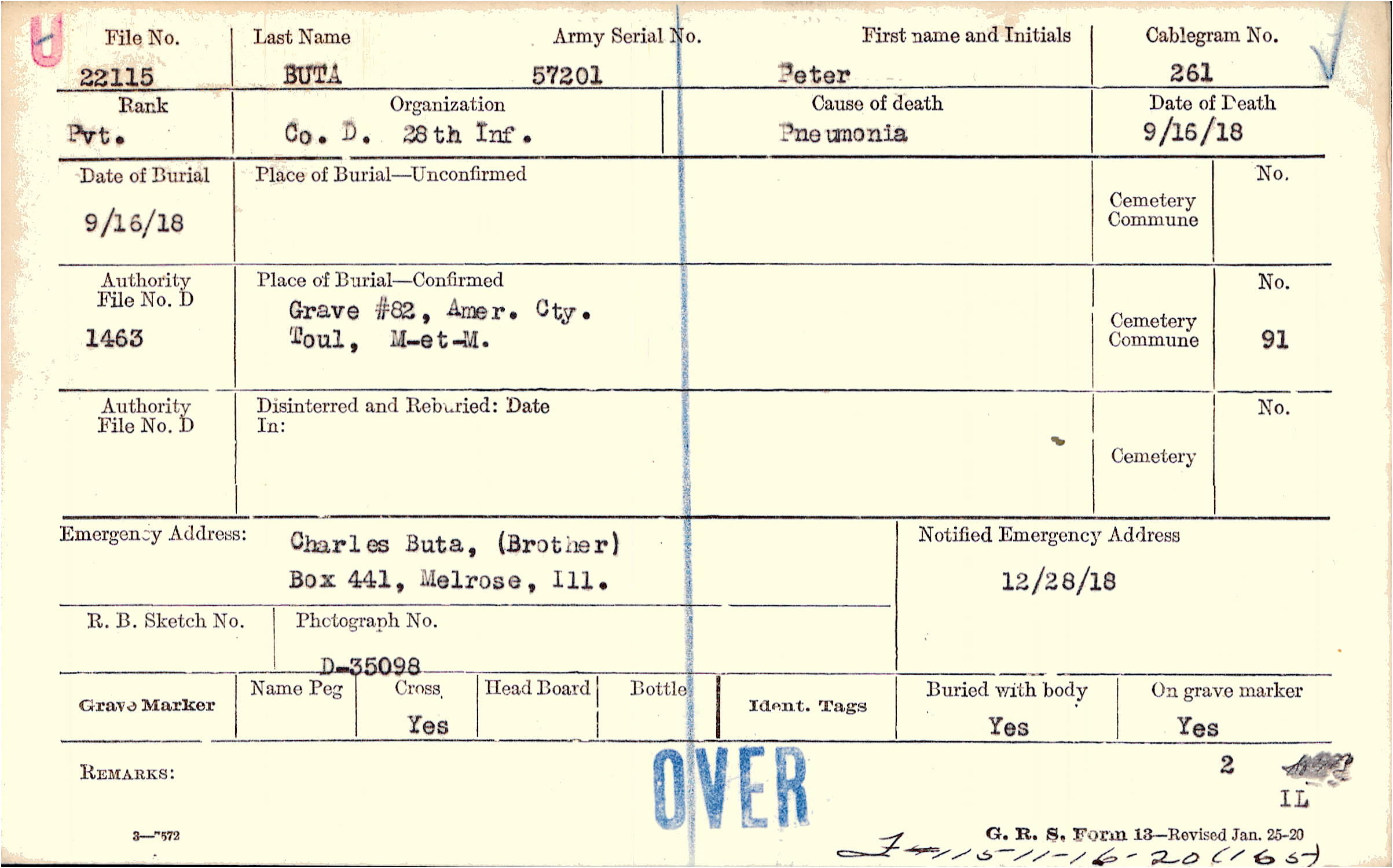 Grave #82, Amer. Cty., Toul, M-et-M