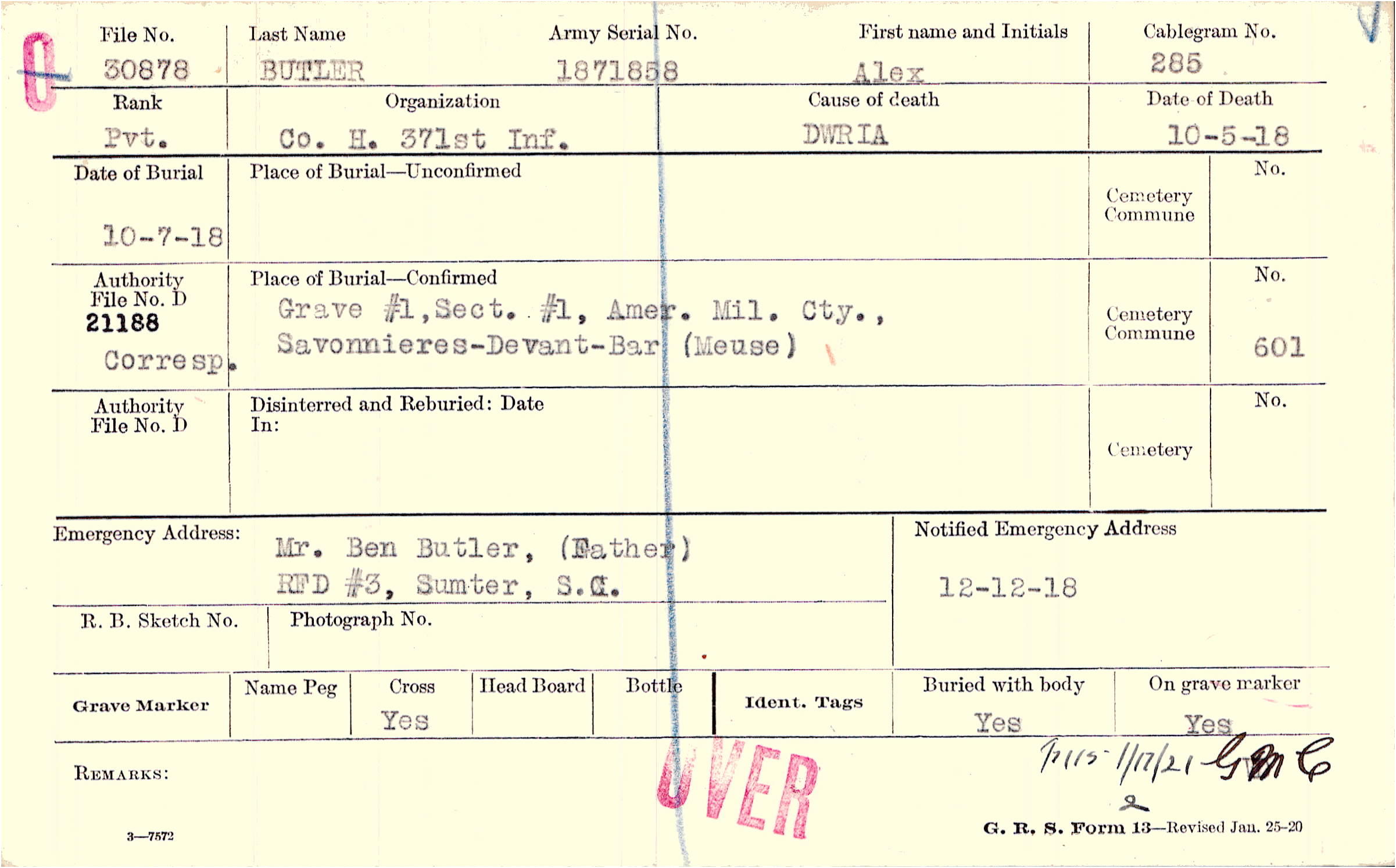 Mr. Ben Butler, (Father), RFD #3, Sumter, S.C.