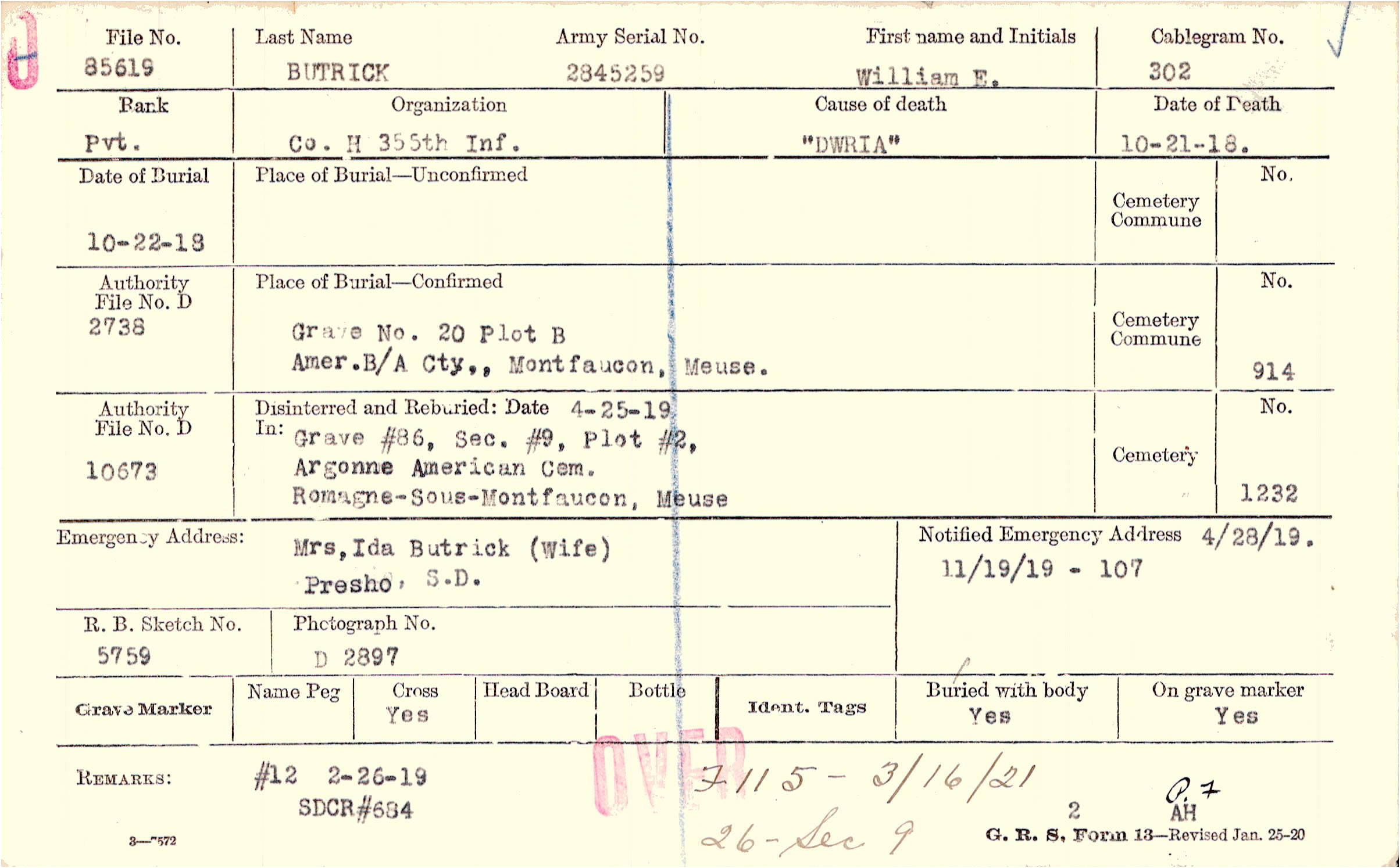 4/28/1919, Form 107: 11/19/1919