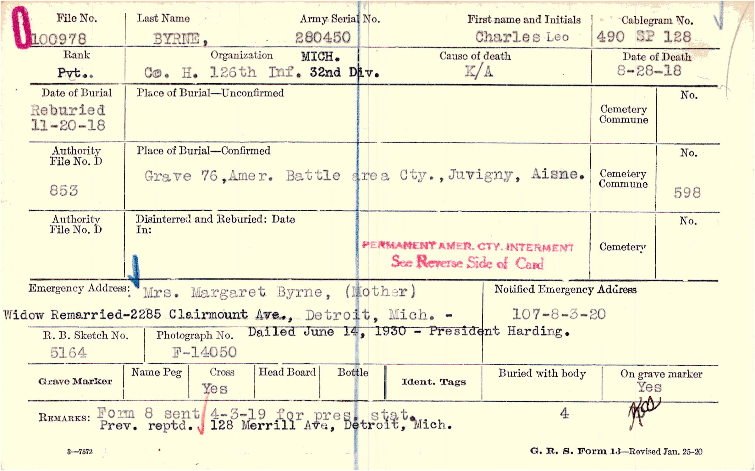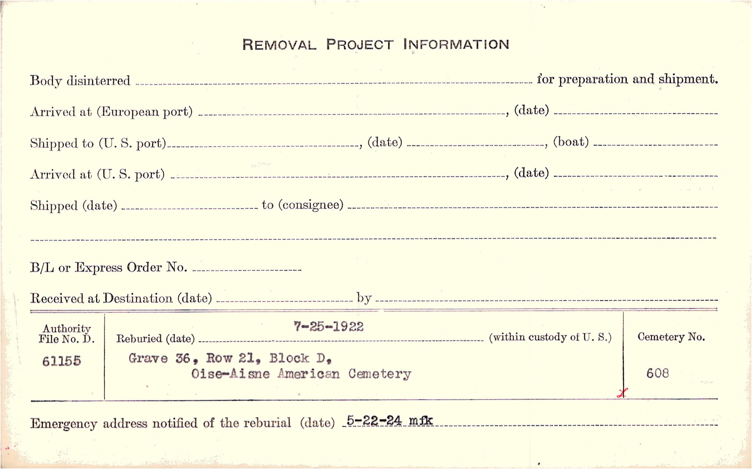 Grave 76, Amer. Battle area Cty., Juvigny, Aisne.