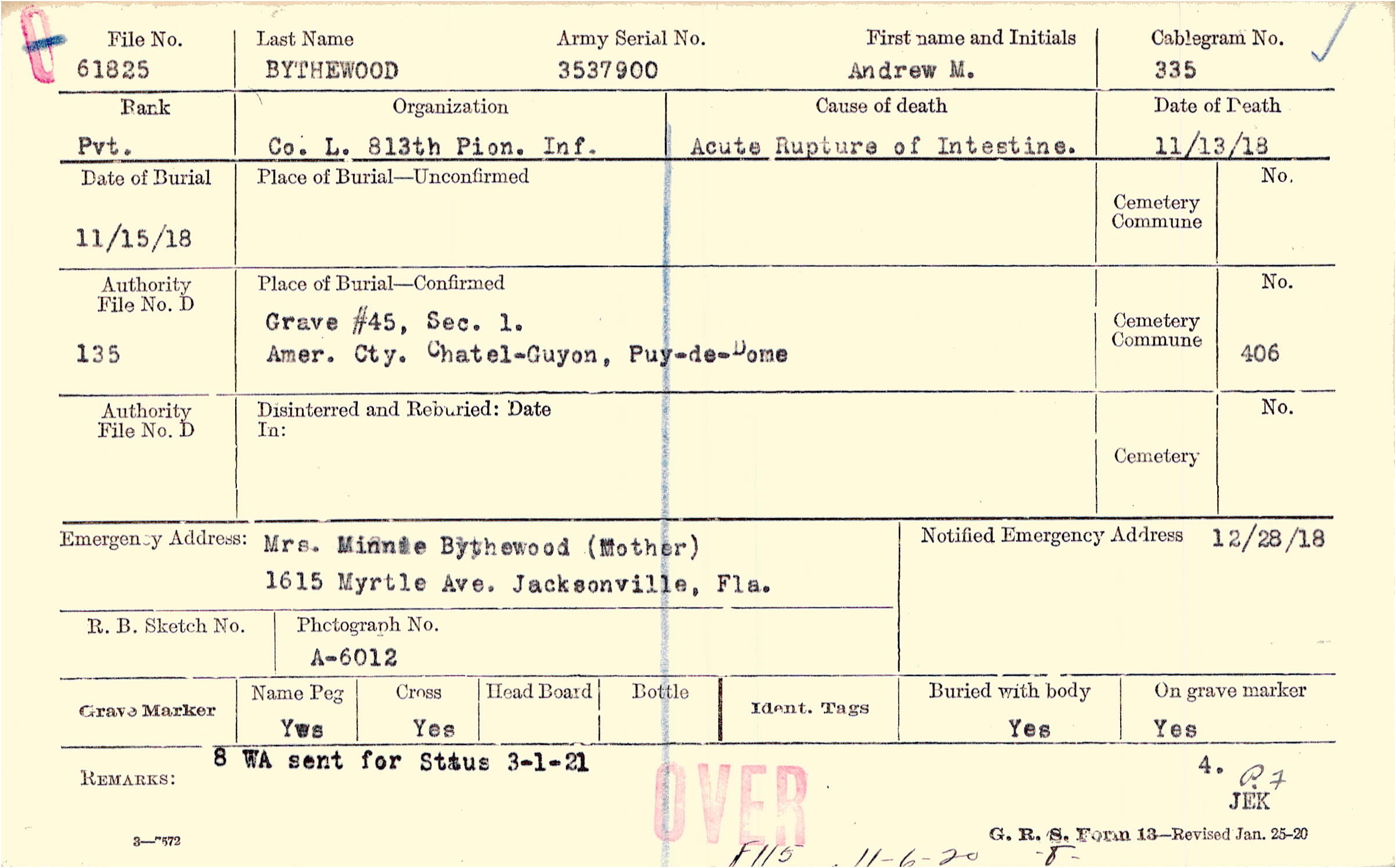 Mrs. Minnie Bythewood (Mother), 1615 Myrtle Ave. Jacksonville, Fla.