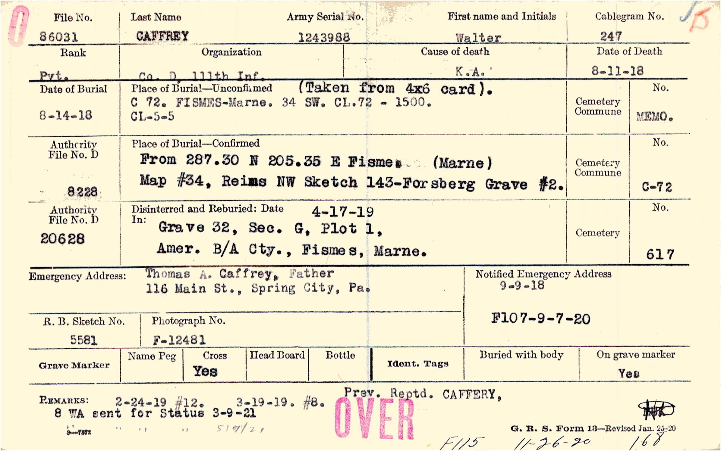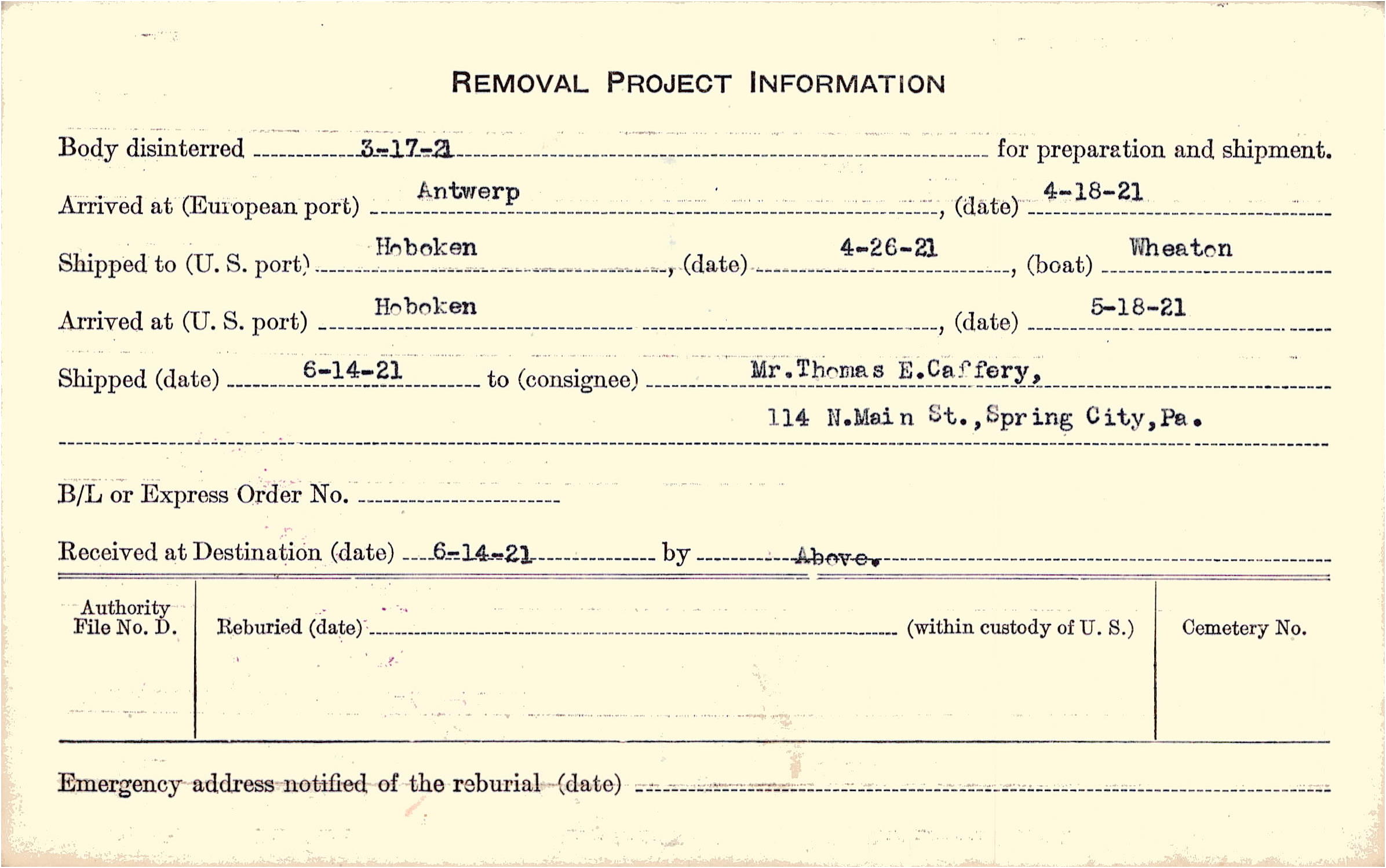 Thomas A. Caffrey, Father, 116 Main St., Spring City, Pa.