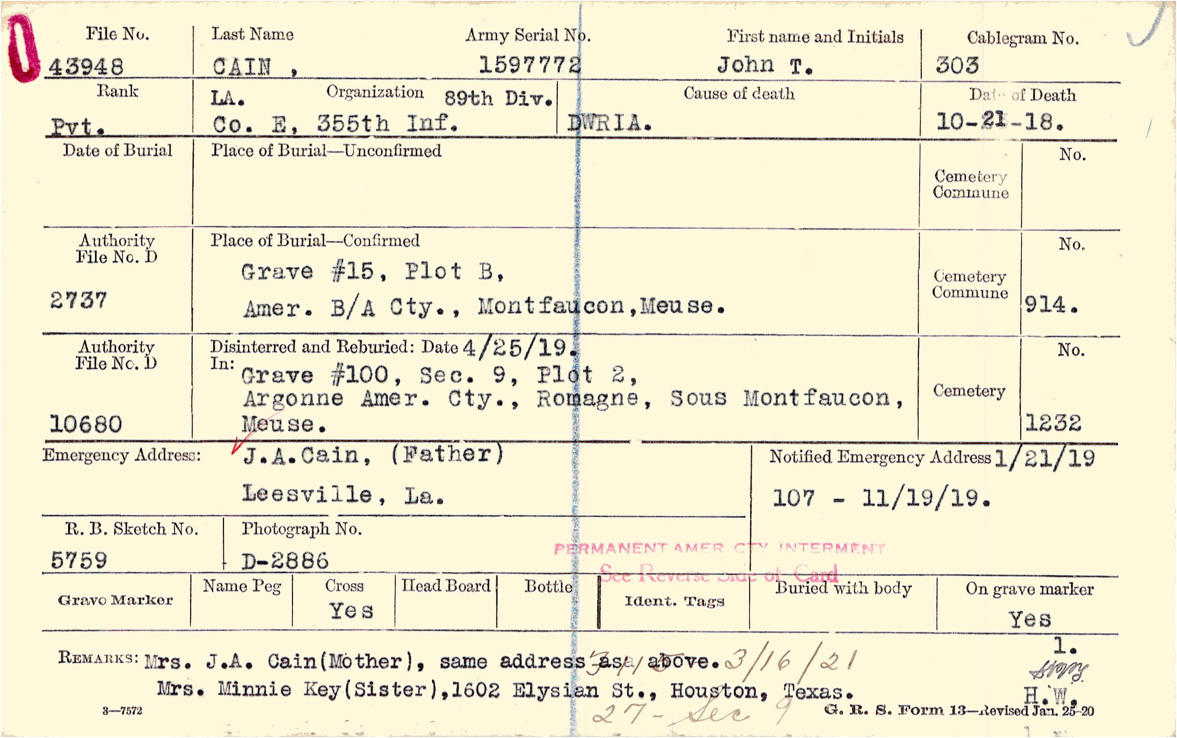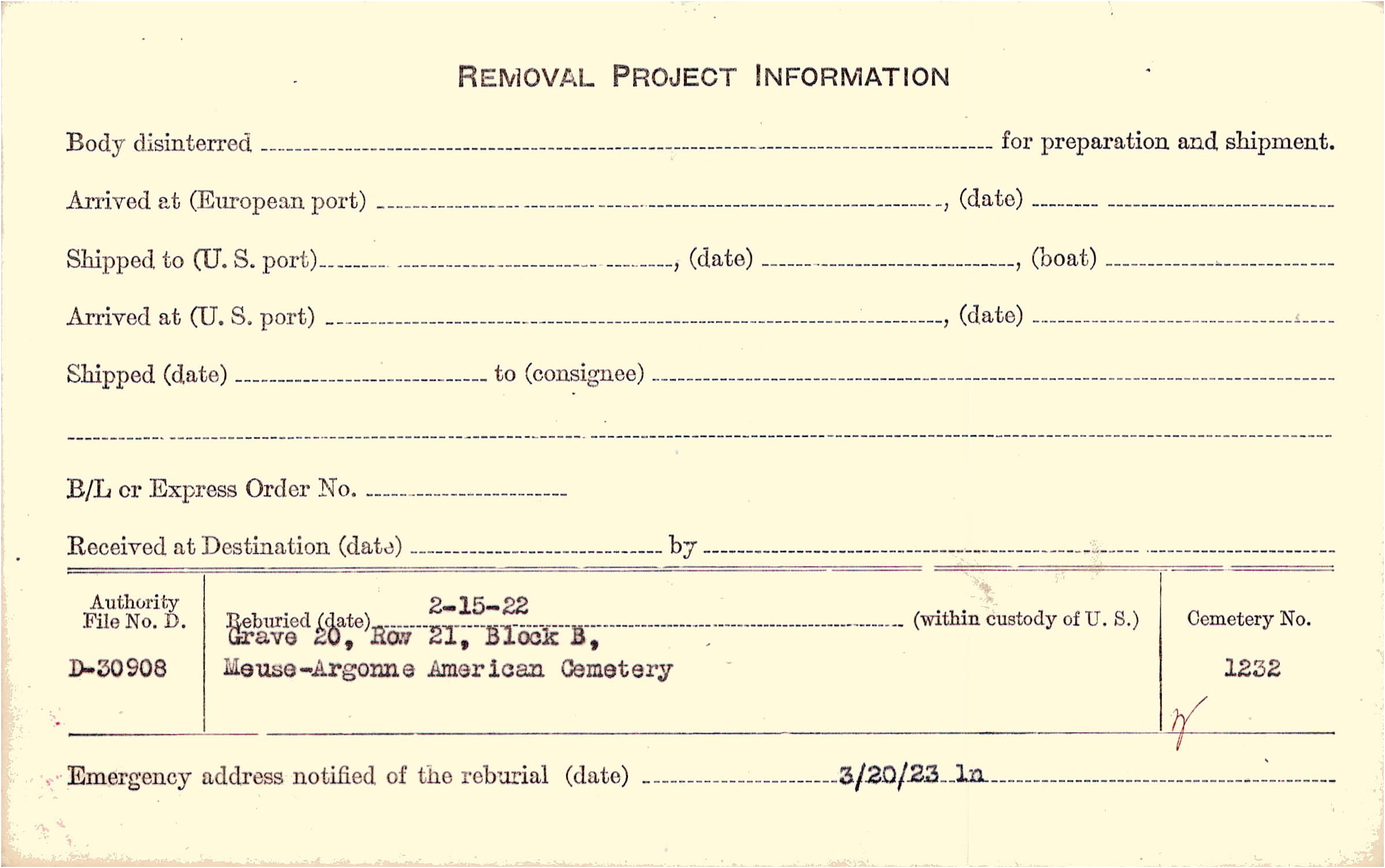 Grave 100, Section 9, Plot 2, Argonne American Cemetery, Romagne-sous-Montfaucon, Meuse