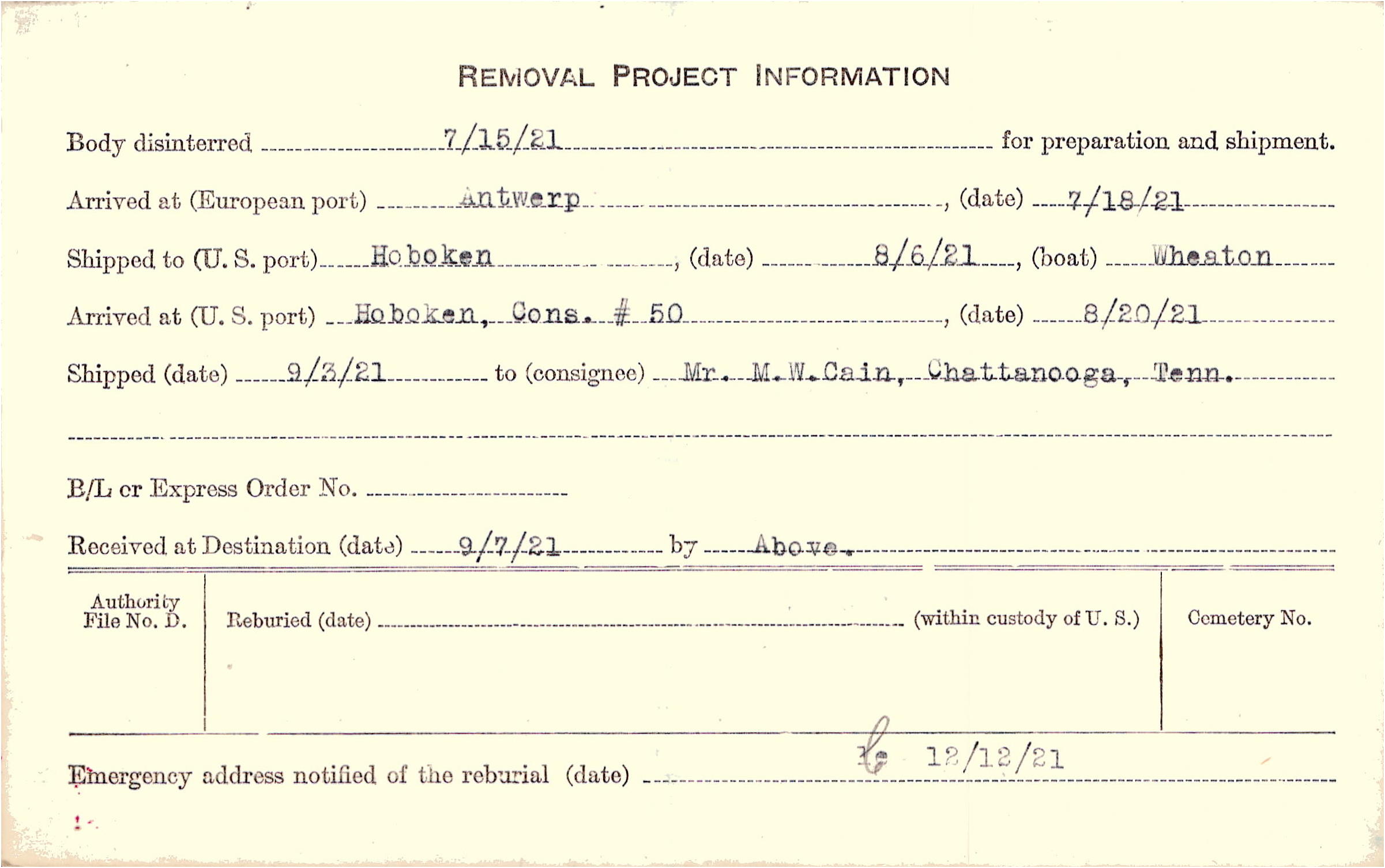 to Mr. M. W. Cain, Chattanooga, Tenn.
