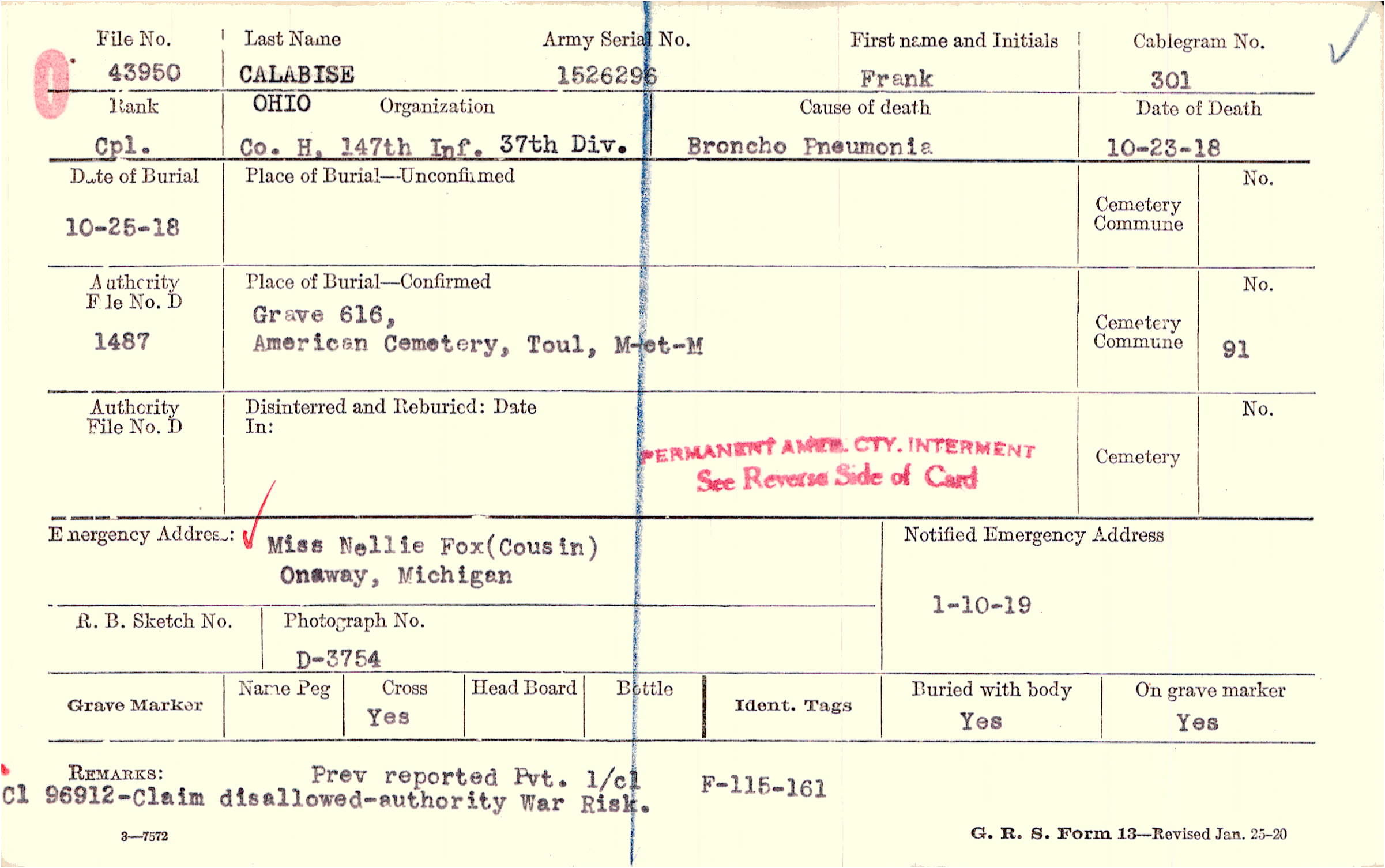 Prev reported Pvt. l/cl Cl 96912-Claim disallowed-authority War Risk., F-115-161
