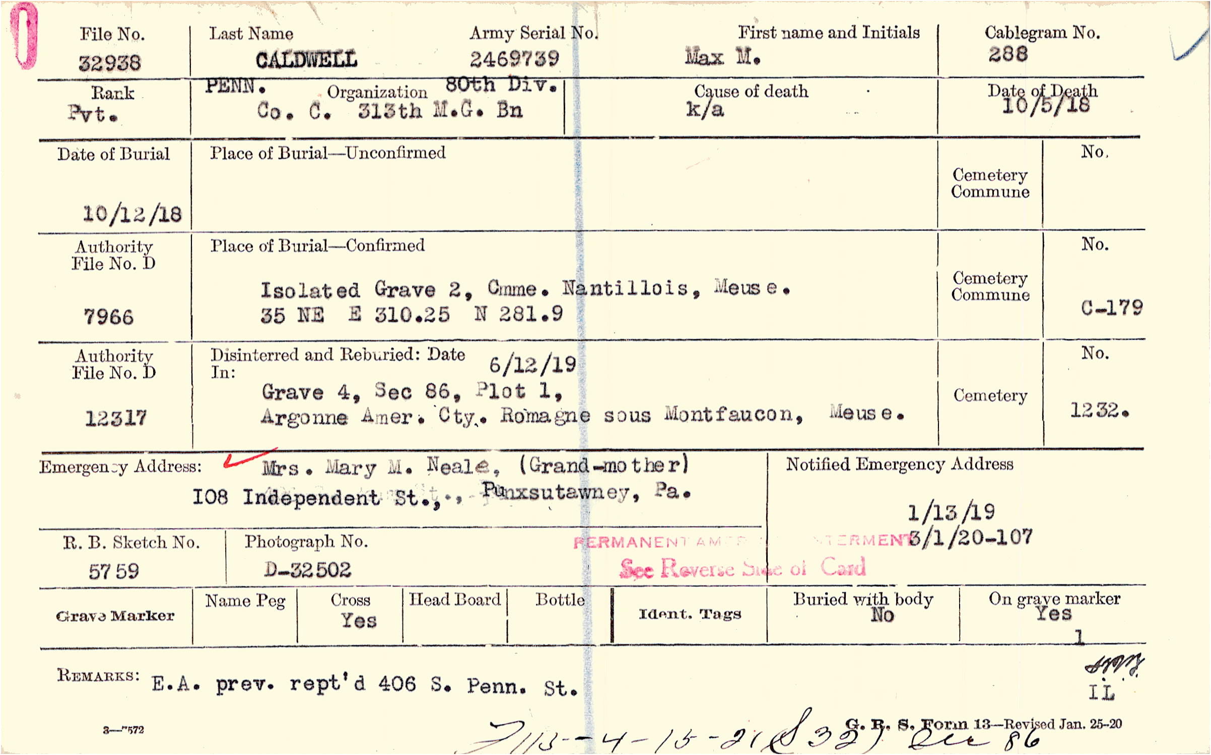 Isolated Grave 2, Cmme. Nantillois, Meuse., 35 NE