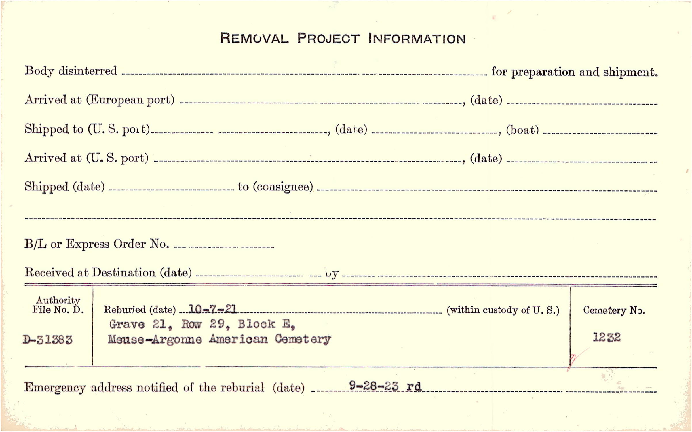 | Permanent Burial in Foreign Cemetery |