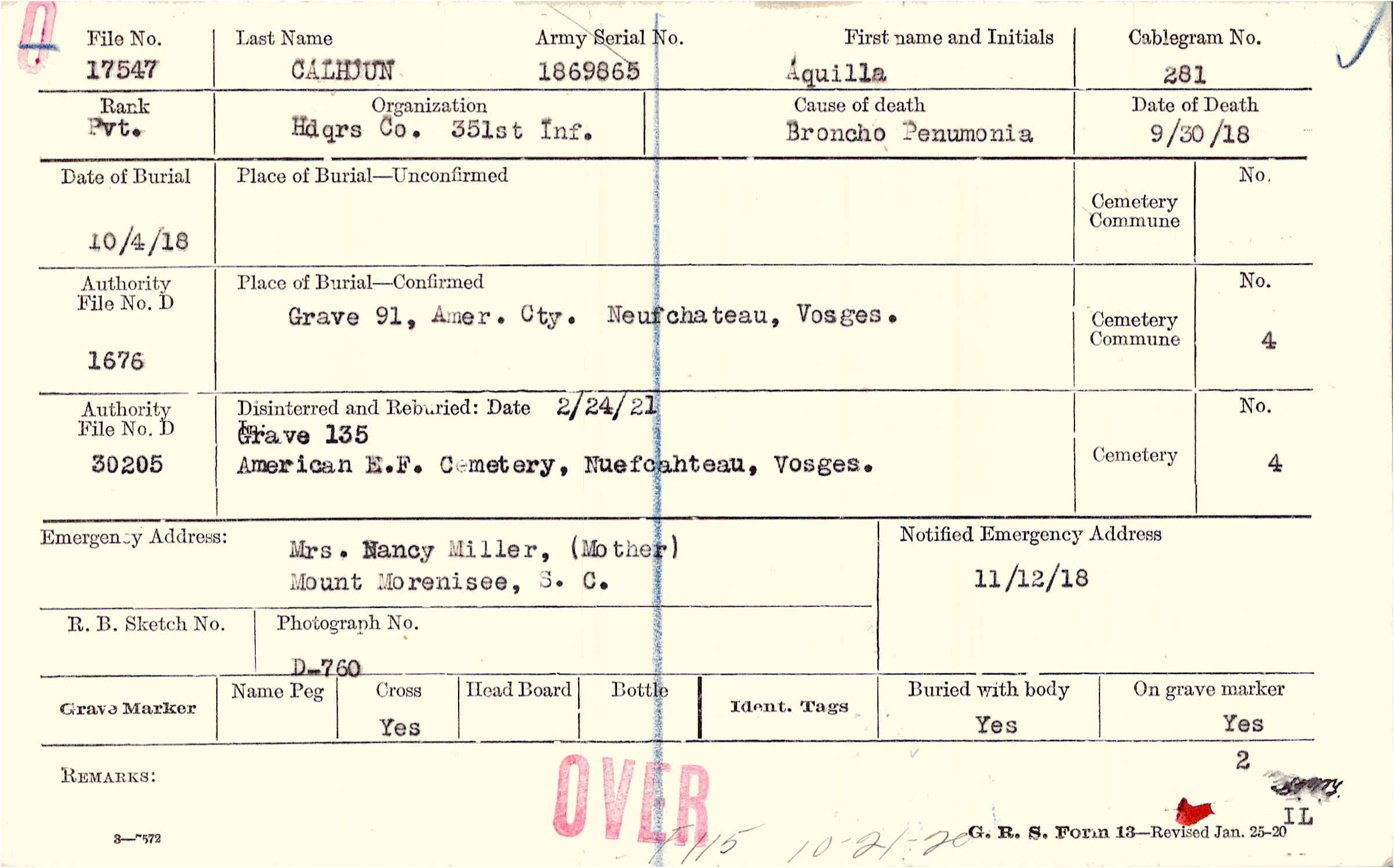 Grave 91, Amer. Cty., Neufchateau, Vosges.