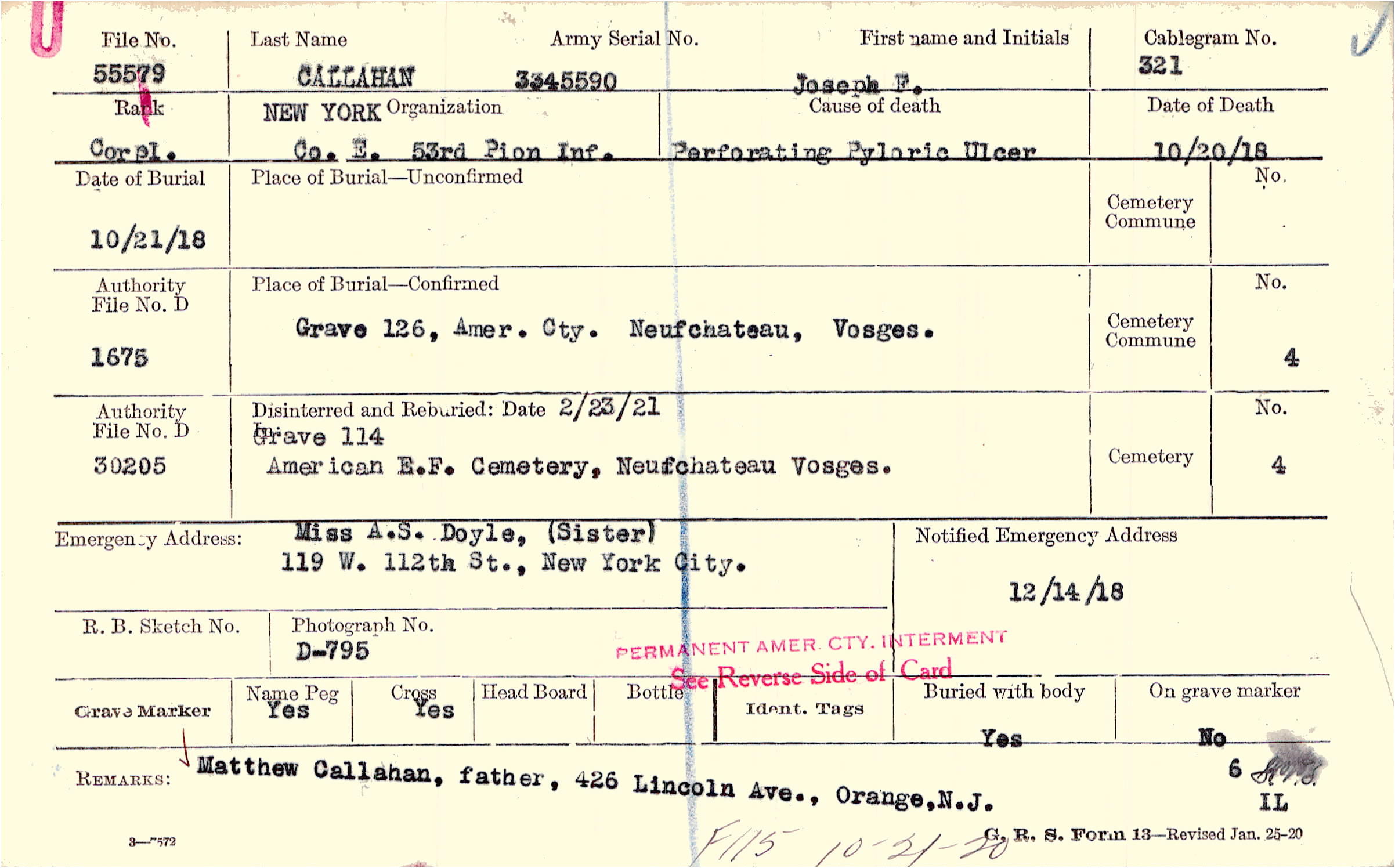 Matthew Callahan, father, 426 Lincoln Ave., Orange, N.J., F115 10-21-20