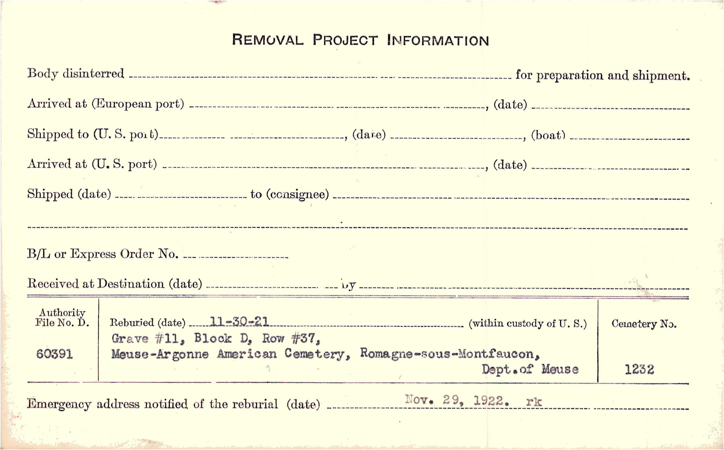 | Permanent Burial in Foreign Cemetery |