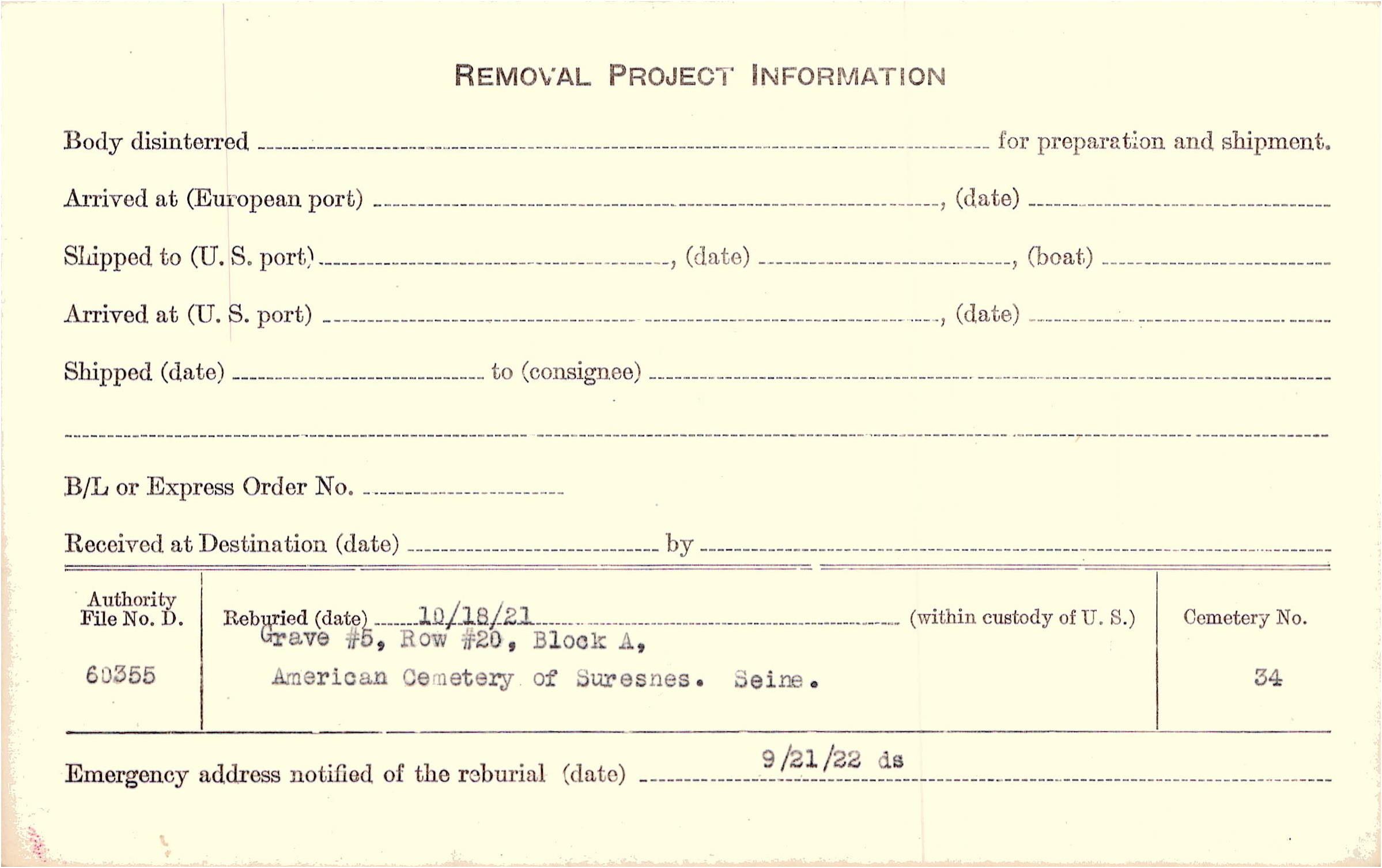 | Permanent Burial in Foreign Cemetery |