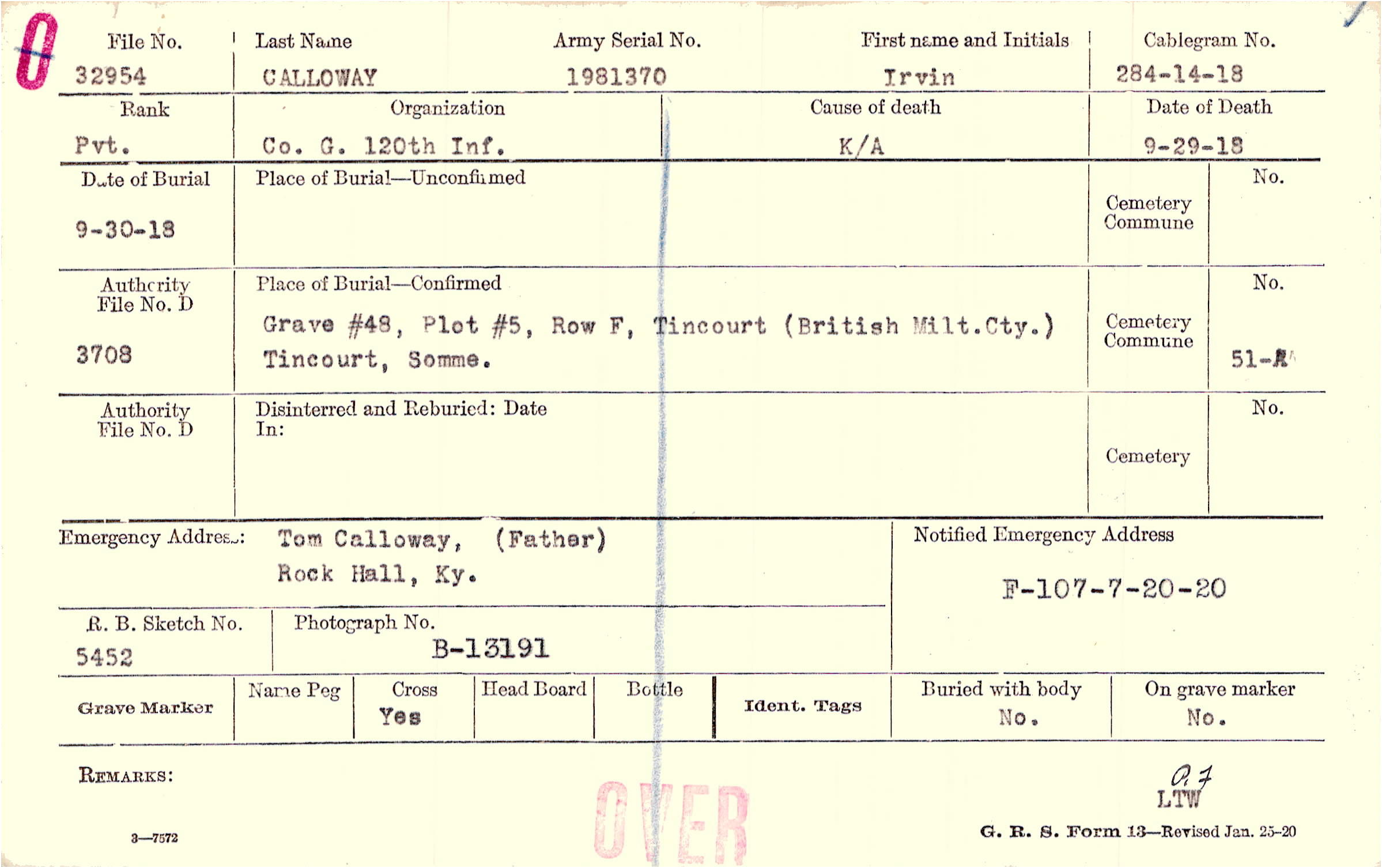 Grave #48, Plot #5, Row F, Tincourt (British Milt. Cty.) Tincourt, Somme.