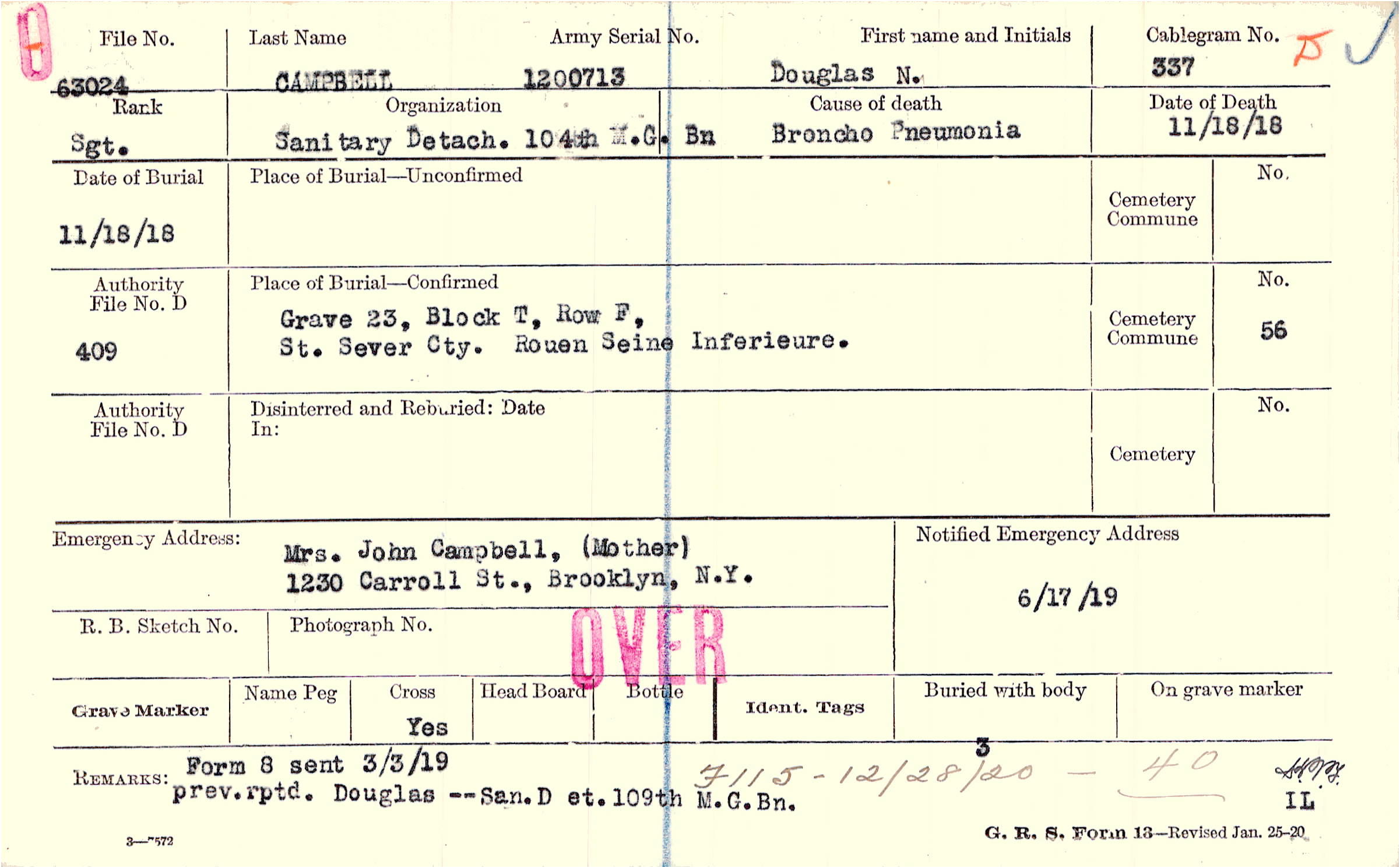 Mrs. John Campbell, (Mother), 1230 Carroll St., Brooklyn, N.Y.