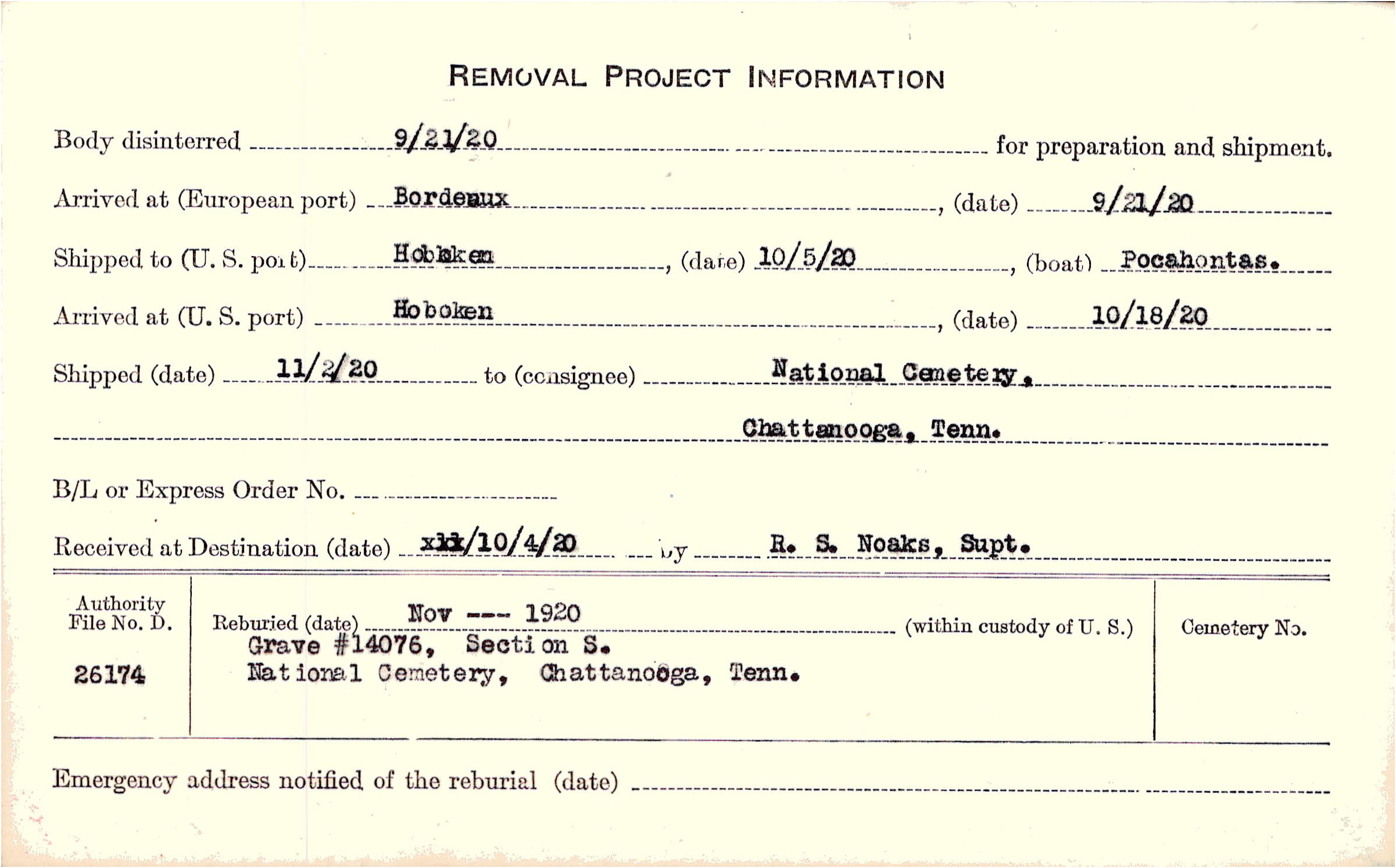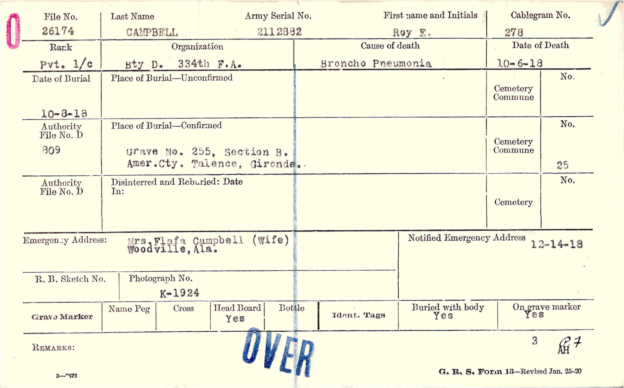 Grave 255, Section B. Amer. Cty., Talence, Gironde.