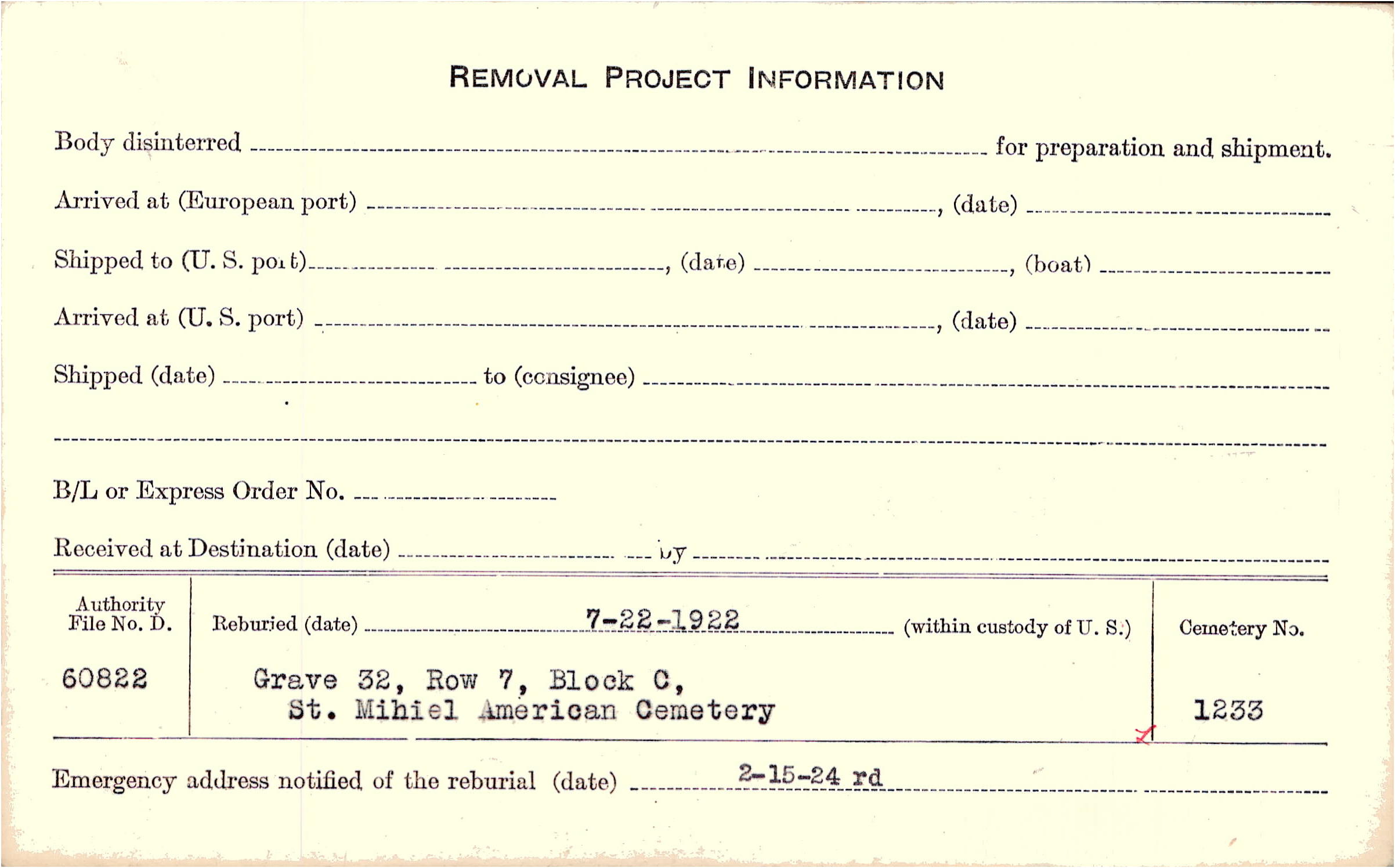 | Permanent Burial in Foreign Cemetery |