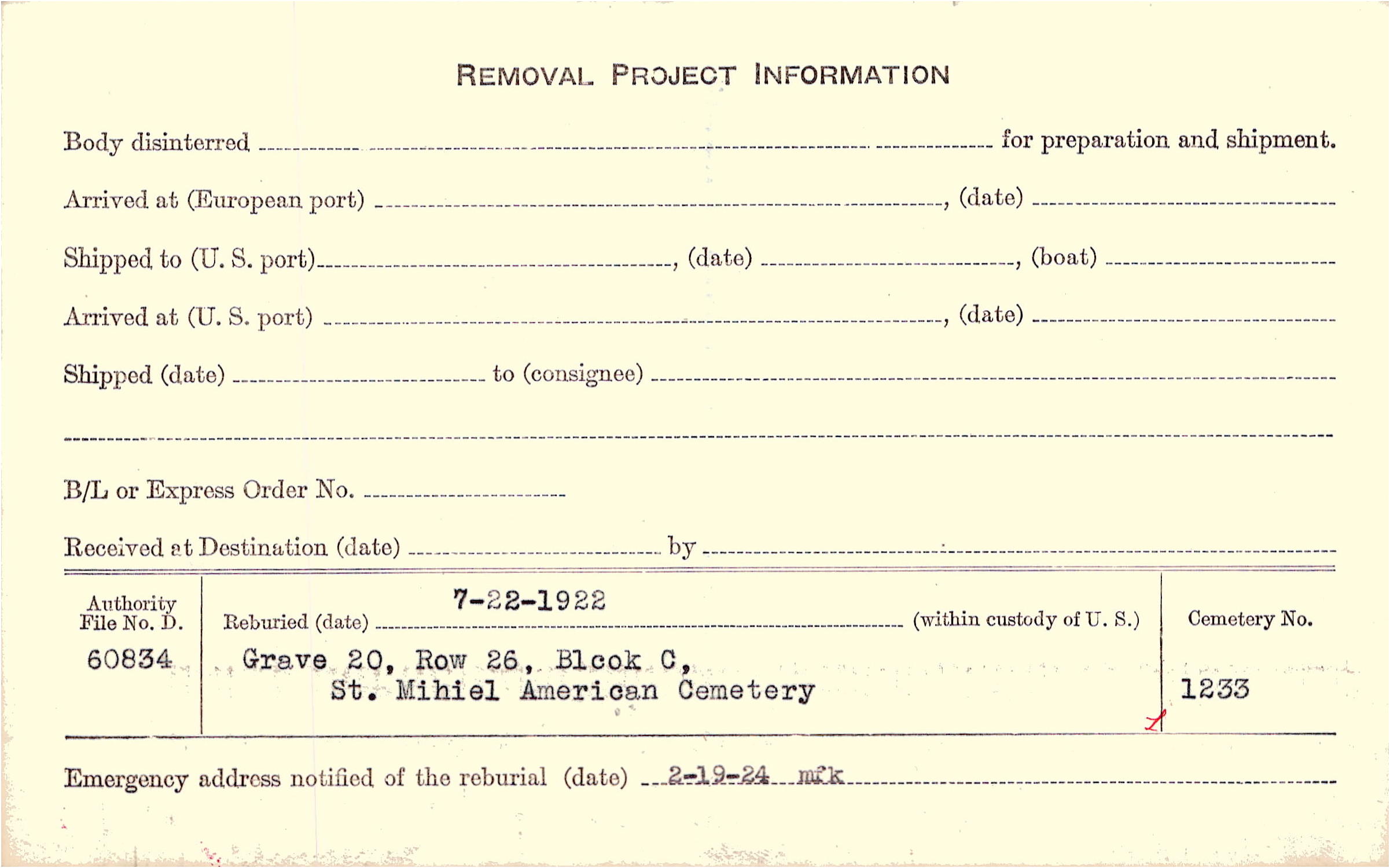 | Permanent Burial in Foreign Cemetery |