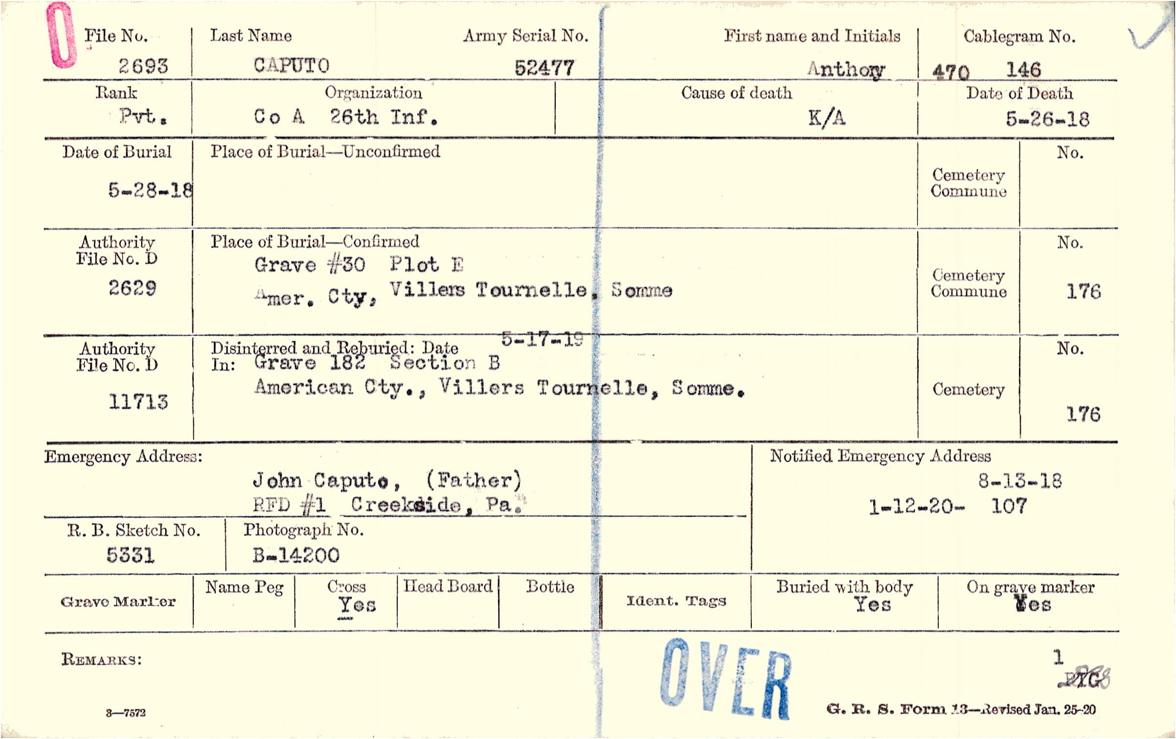 John Caputo, (Father), RFD #1, Creekside, Pa.