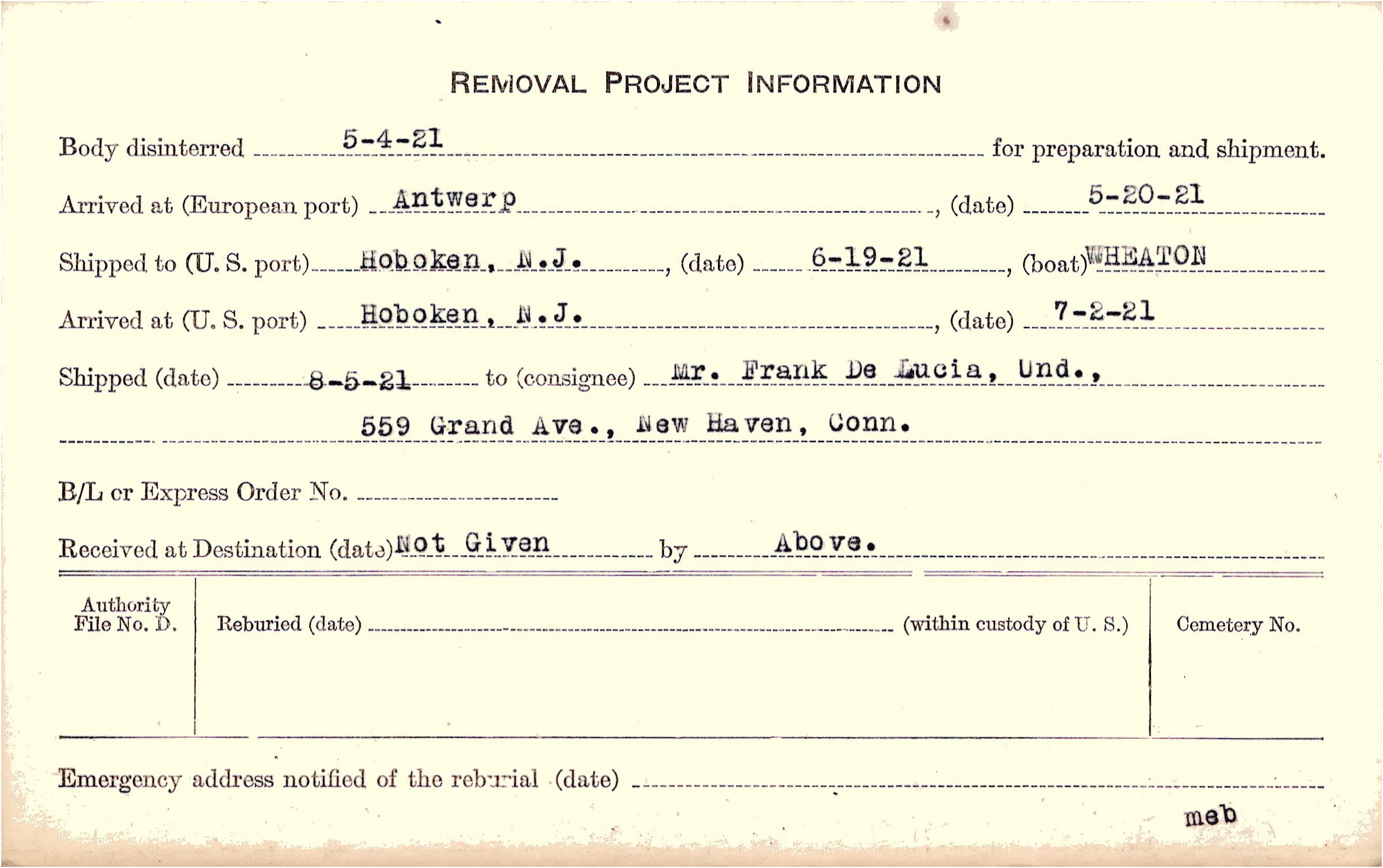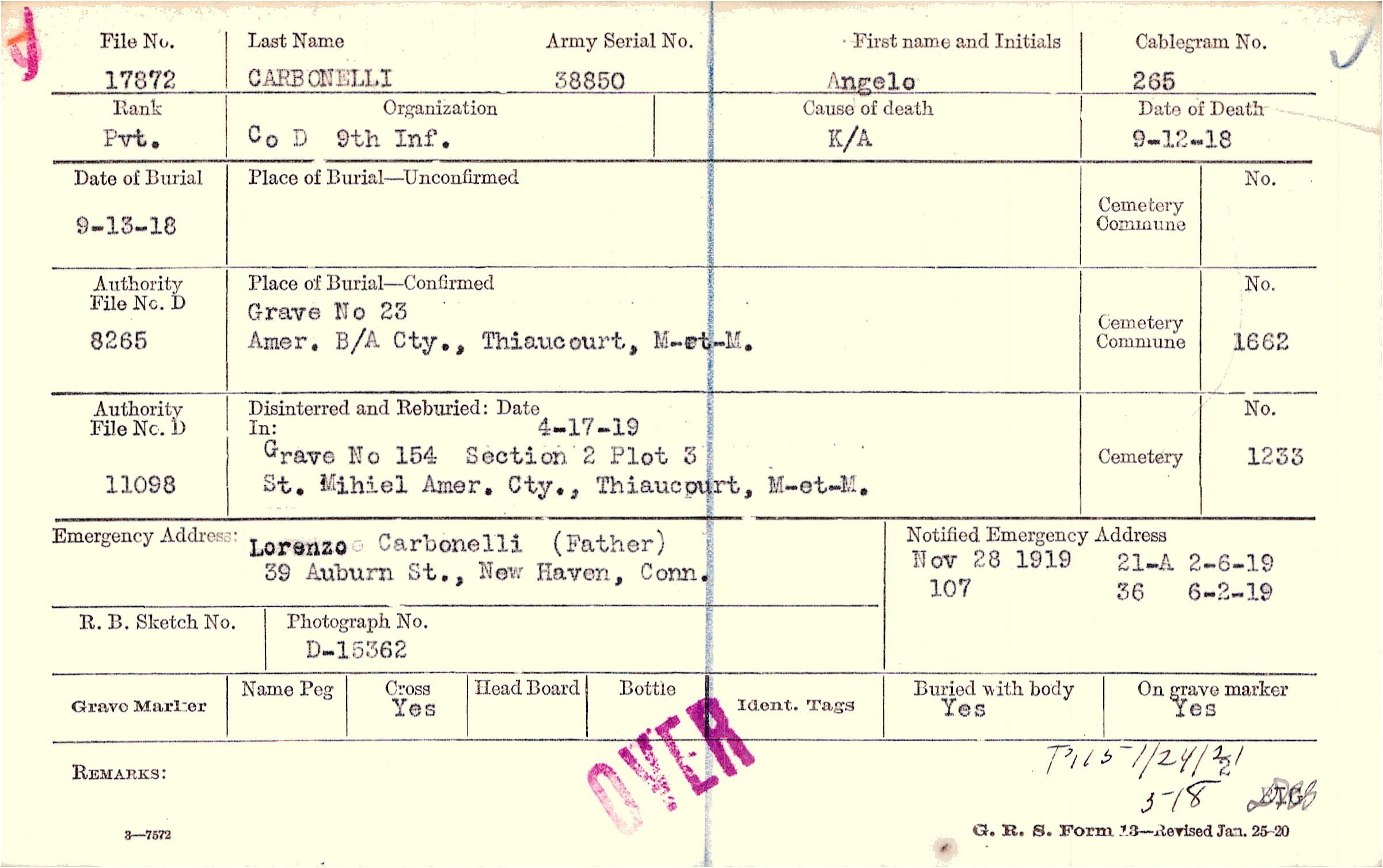 Lorenzo Carbonelli (Father), 39 Auburn St., New Haven, Conn.