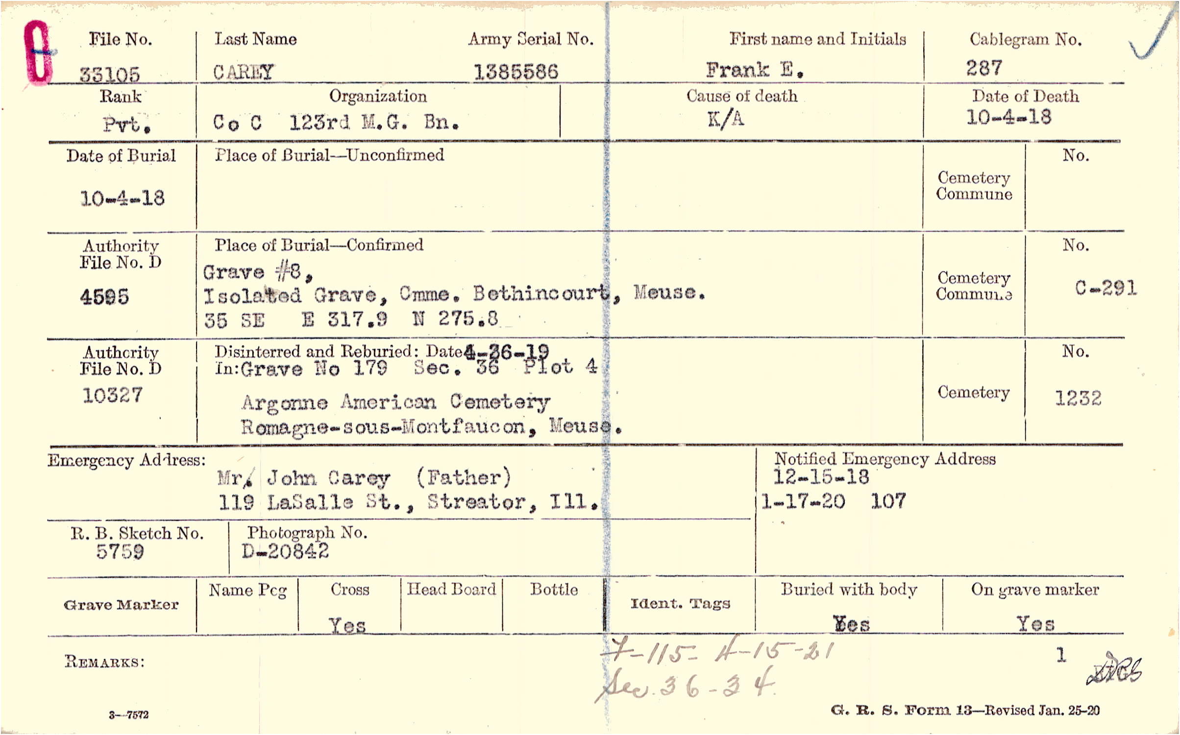 12/15/1918, Form 107: 1/17/1920