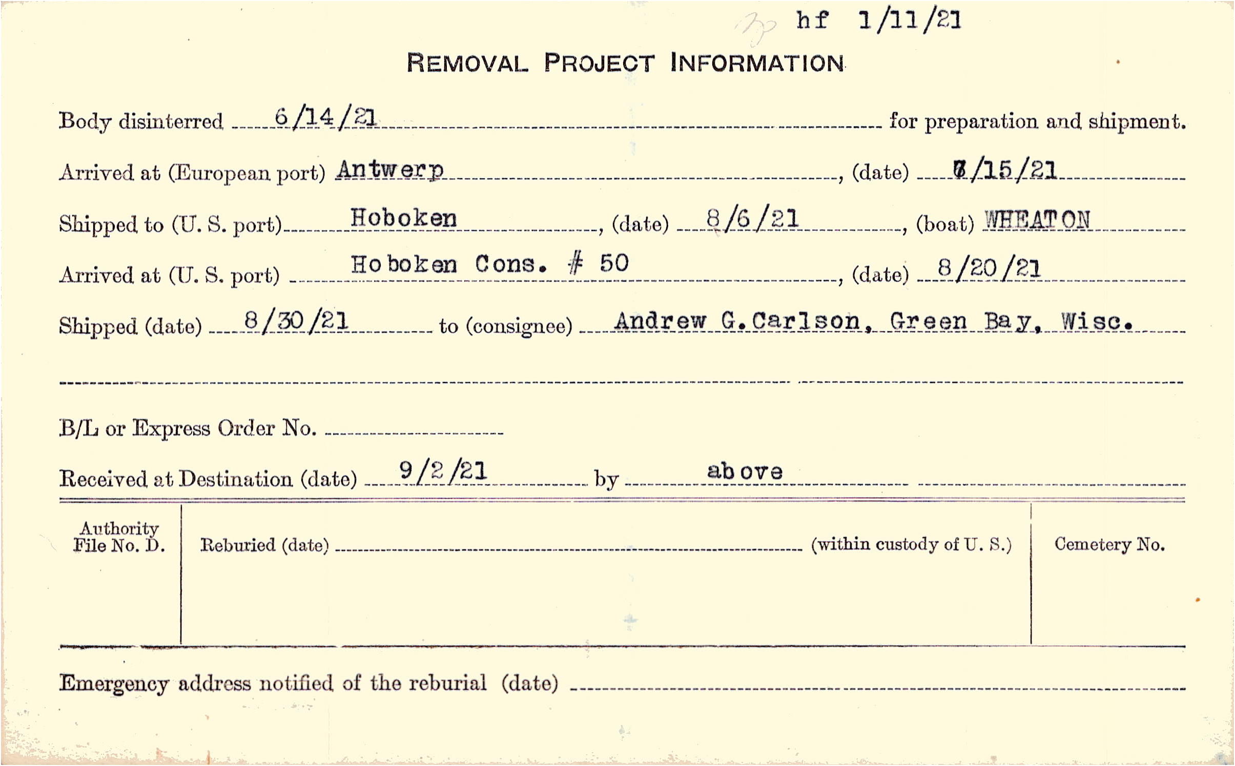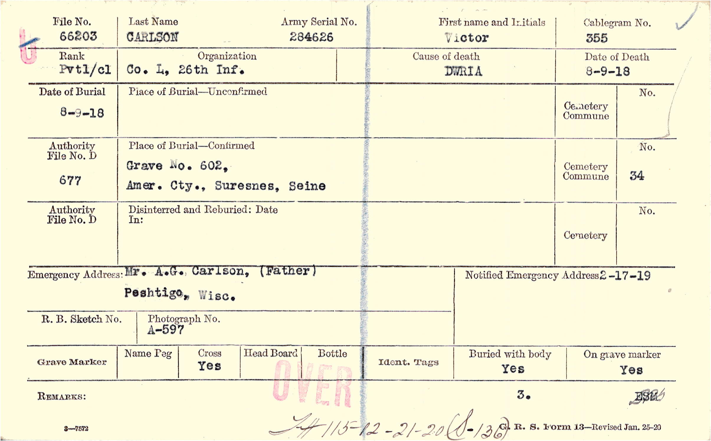 Mr. A.G. Carlson, (Father), Peshtigo, Wisc.