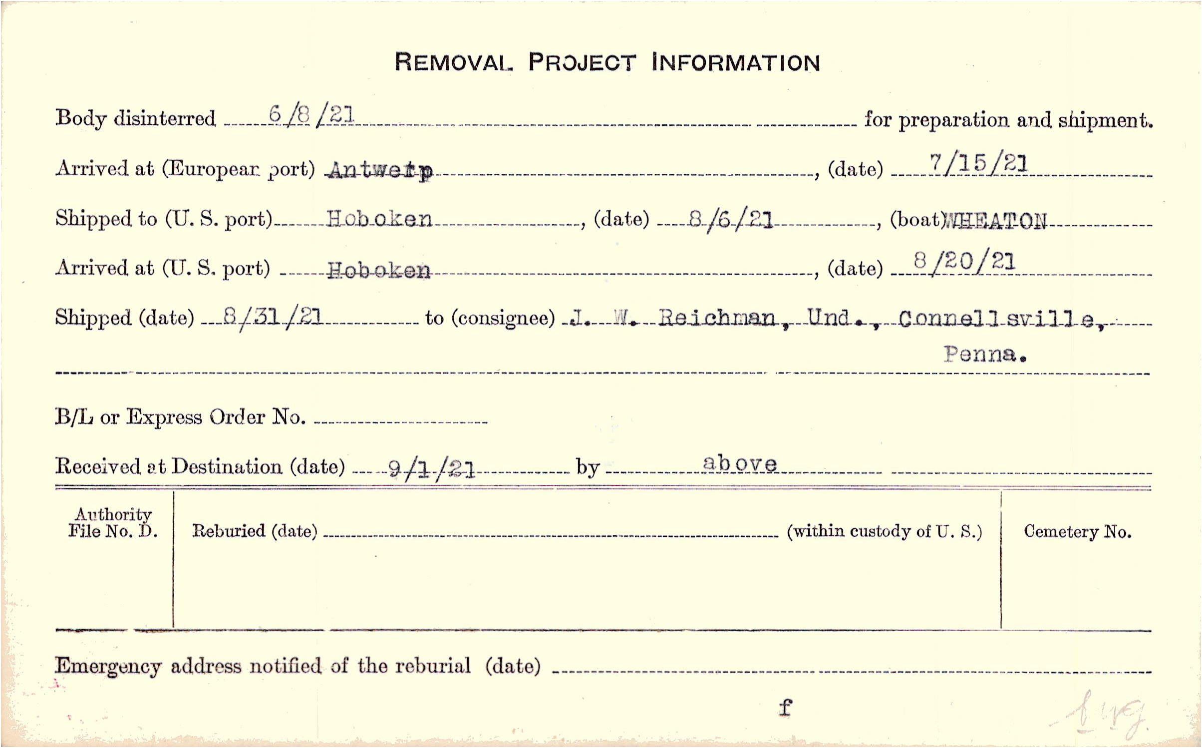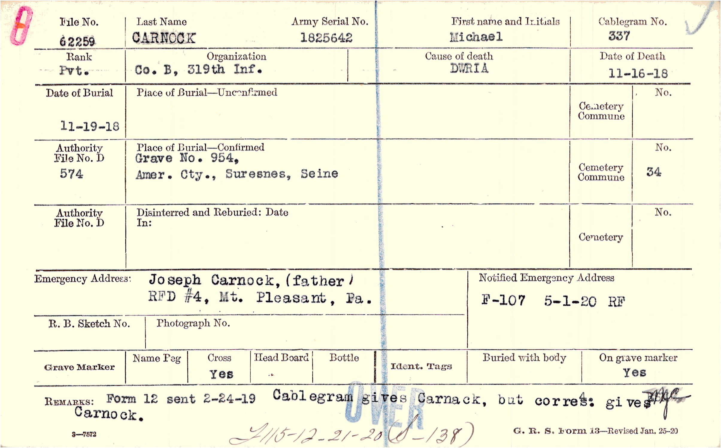 Joseph Carnock, (father), RFD #4, Mt. Pleasant, Pa.