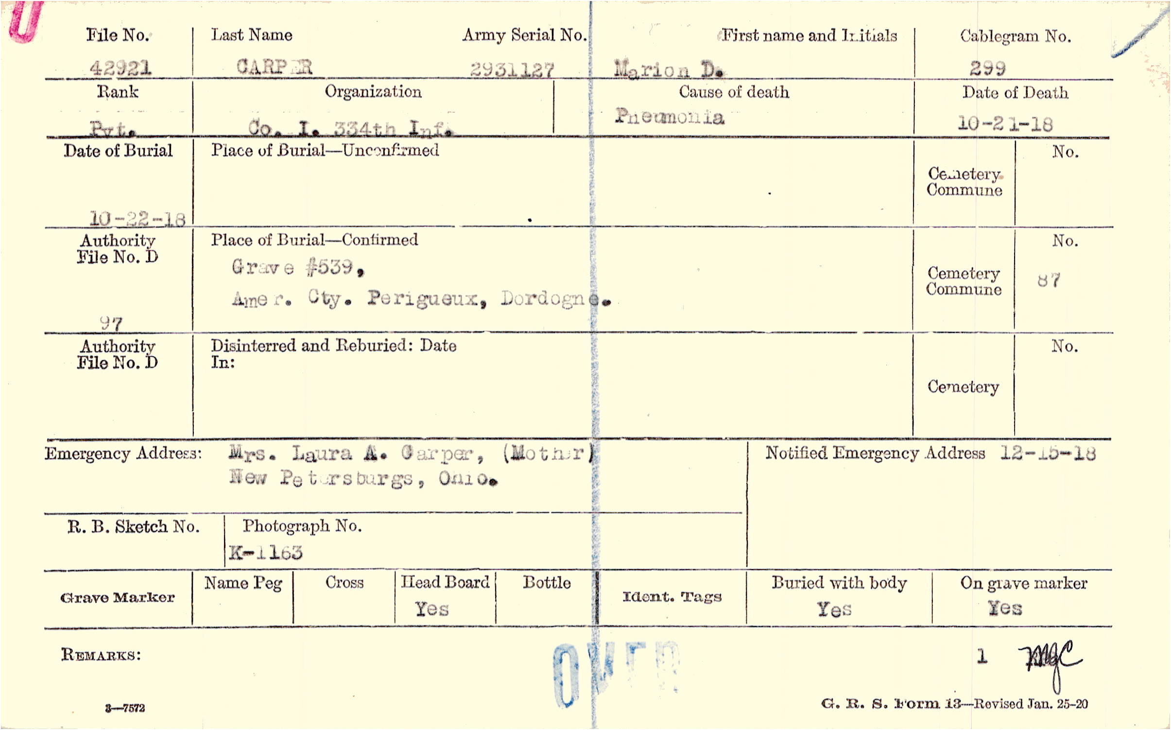 Grave #539, Amer. Cty., Perigueux, Dordogne.