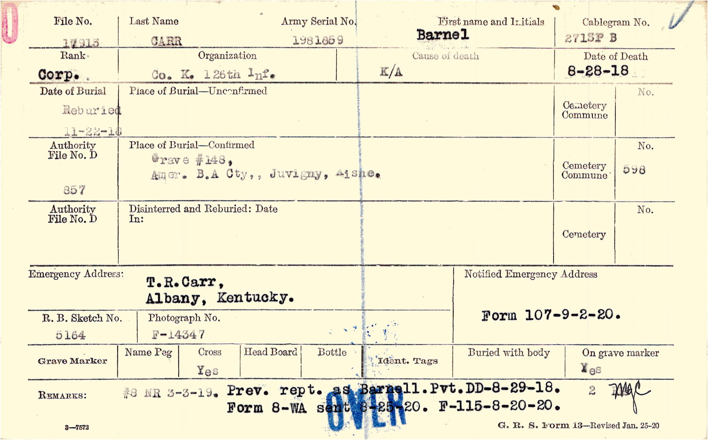 Grave #148, Amer. B/A Cty, , Juvigny, Aisne.