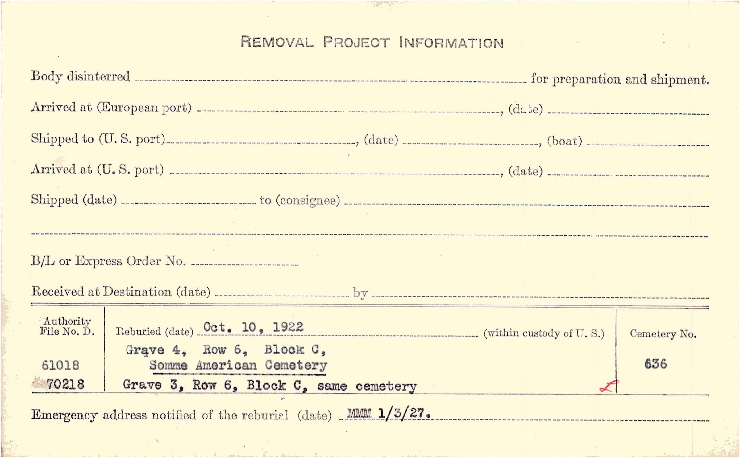 Prior Burial in Foreign Cemetery |