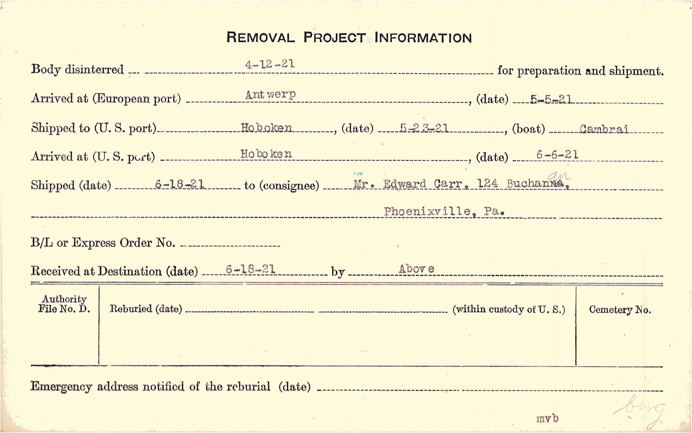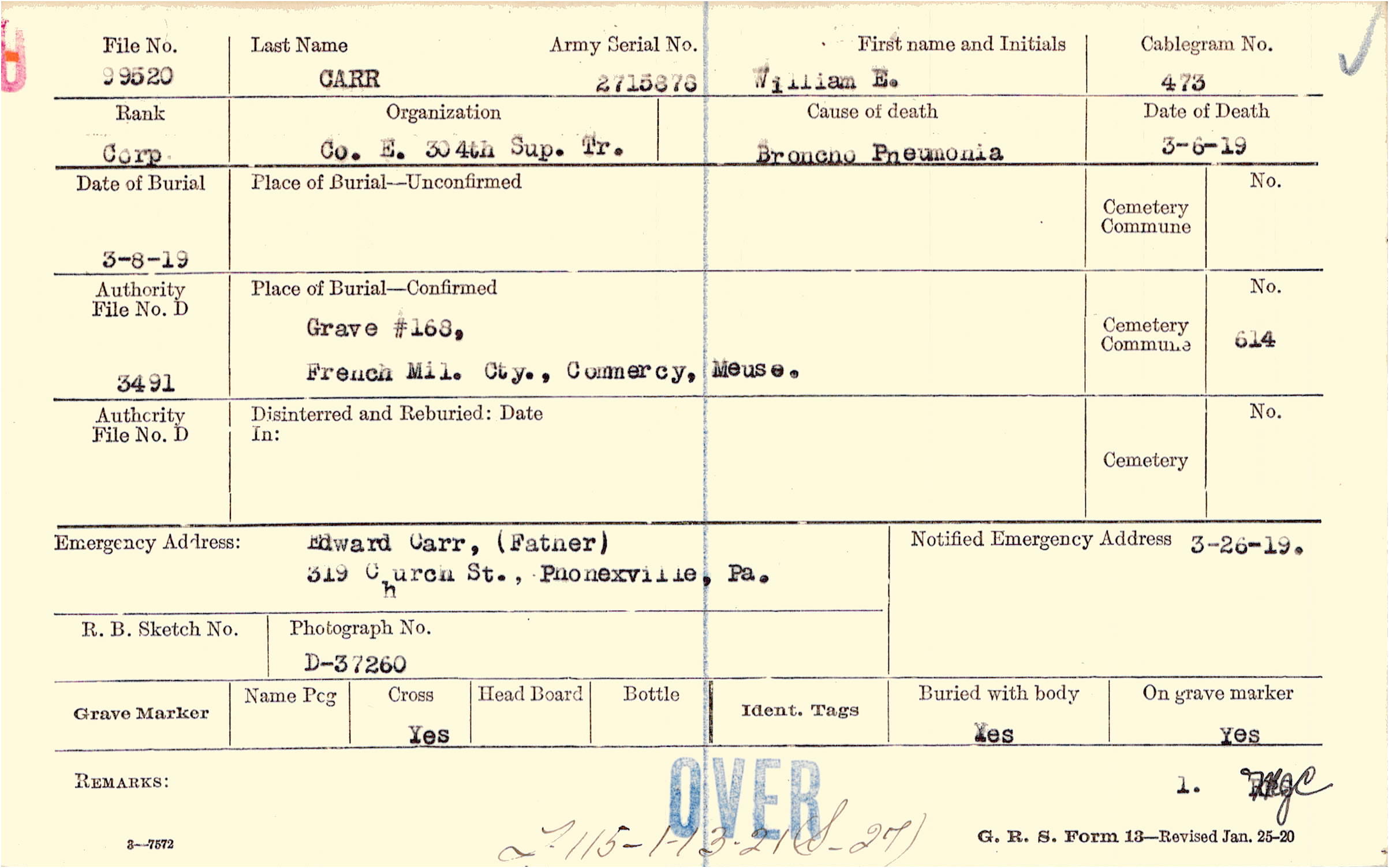 Edward Carr, (Father), 319 Church St., Phonexville, Pa.