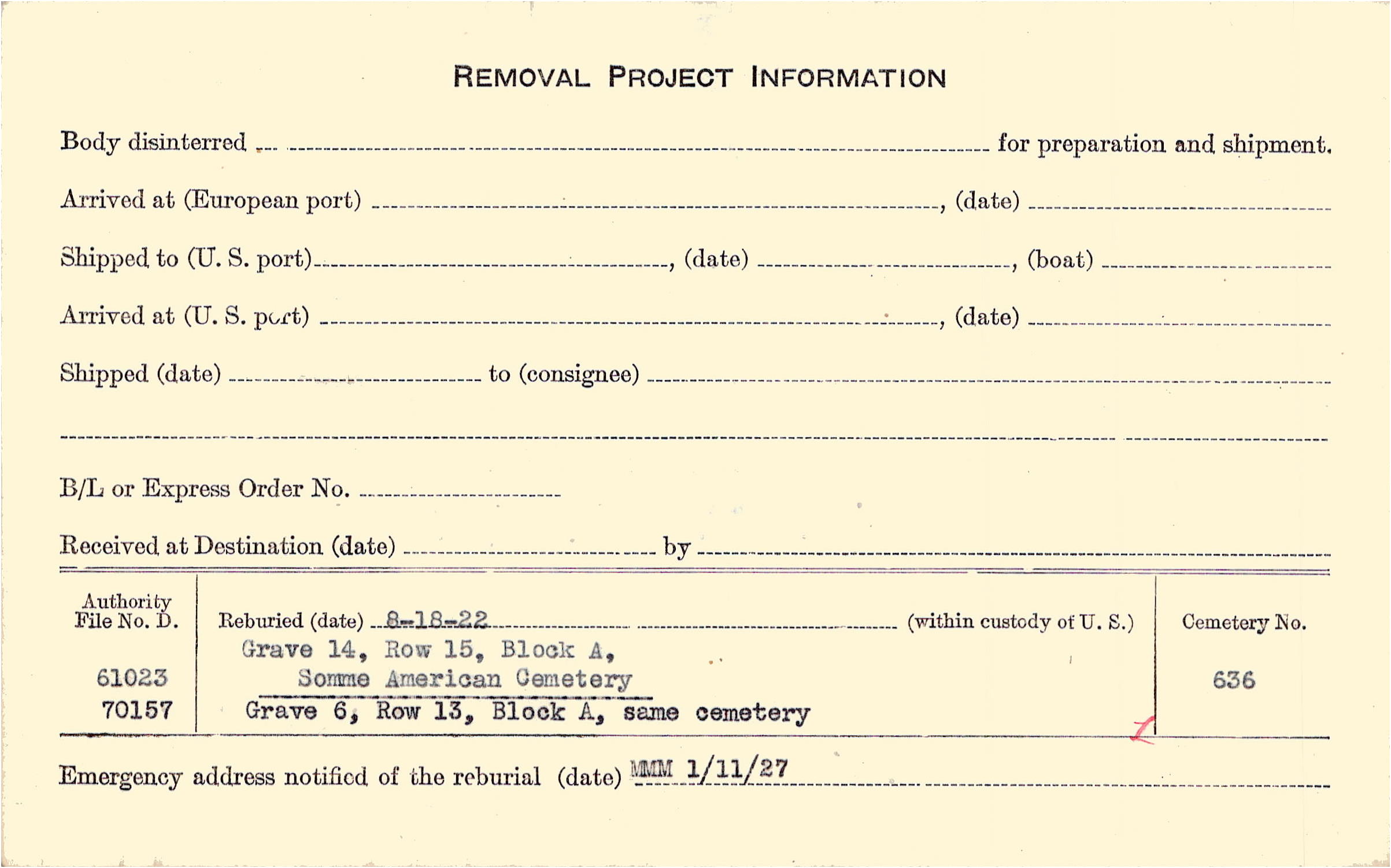 Prior Burial in Foreign Cemetery |